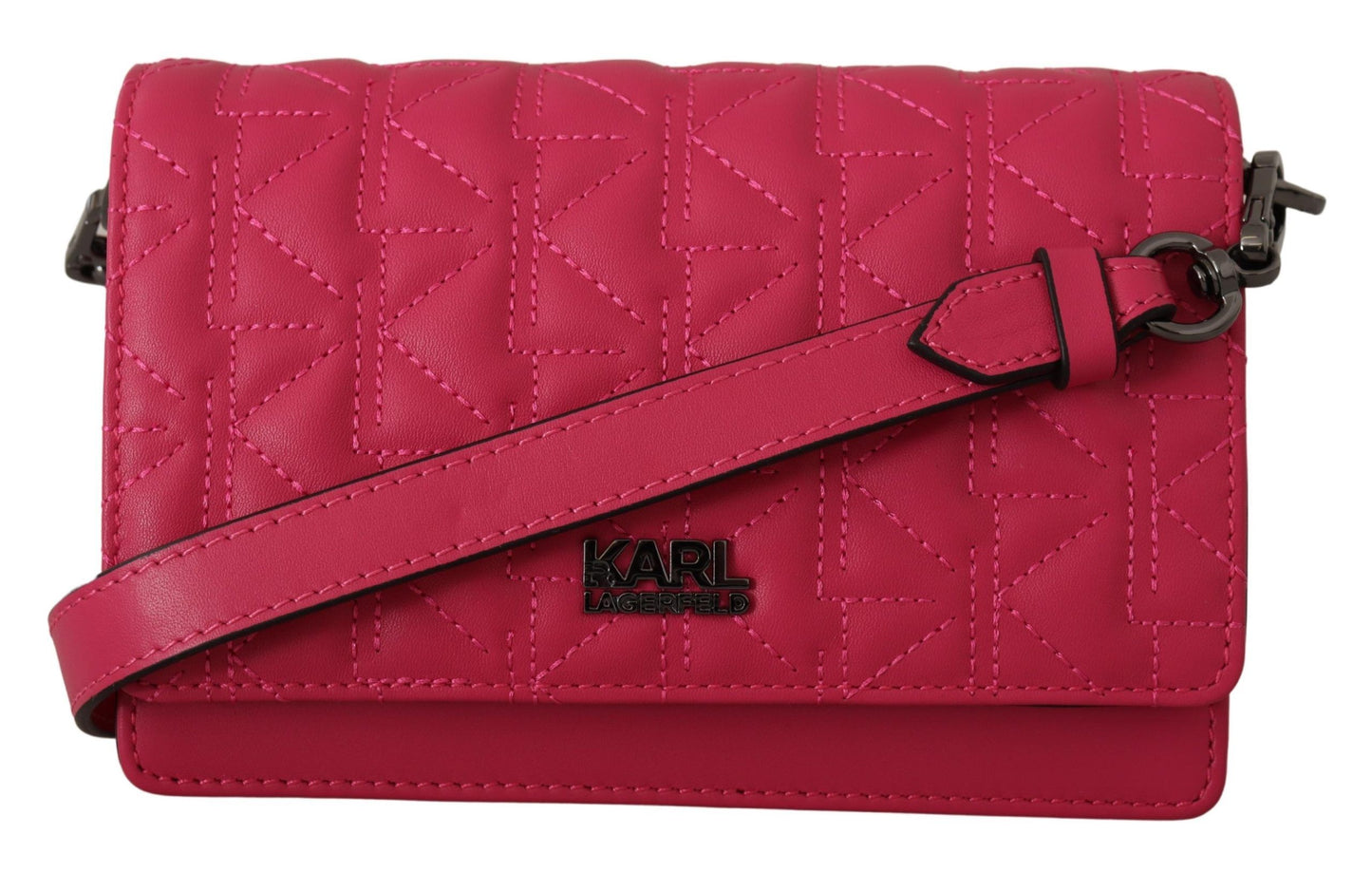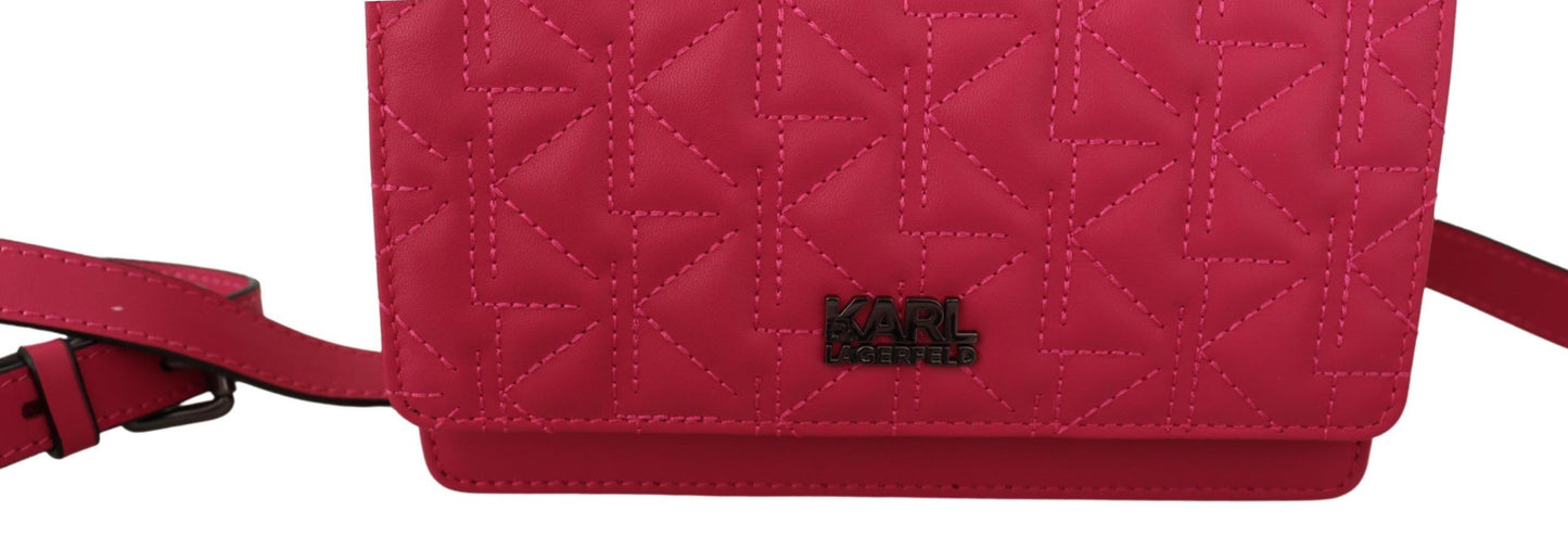 Step out in style with this flawless, brand new K/KURL crossbody bag from Karl Lagerfeld. The peony pink hue lends a fresh pop of color to any outfit, while the high-quality leather exudes sophistication. Practicality meets panache with the bag’s convenient flap snap closure, two main compartments, and an additional interior zip compartment and slip pocket. Silver-tone hardware adds a sleek finish, and with a removable and adjustable strap, you can tailor this piece for shoulder or crossbody wear.