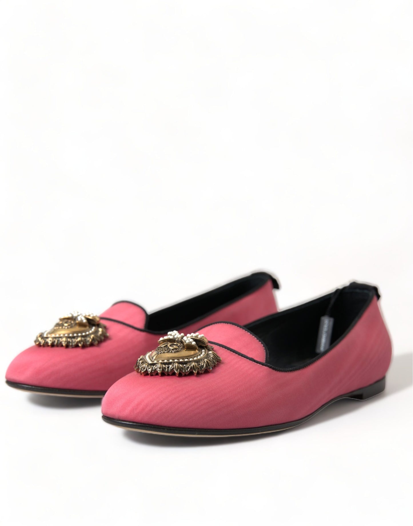 Gorgeous brand new, 100% Authentic Dolce & Gabbana devotion theme enriches every season with new models. To be paired with masculine suits, the Audrey slippers are made of moiré and embellished with the iconic bejeweled logoed heart handcrafted with metal alloy with pearl inlays.