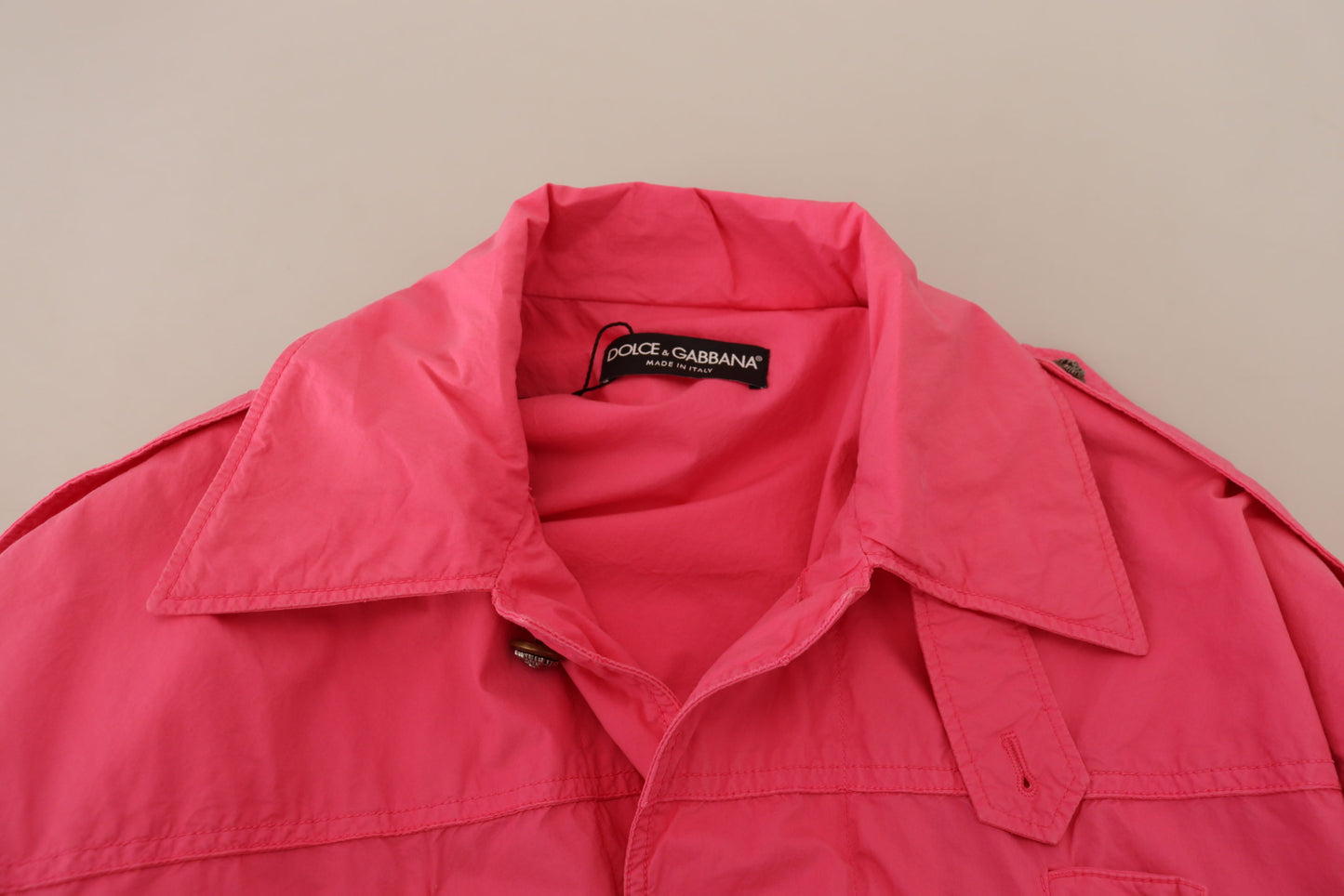 Embrace elegance with this stunning new arrival from Dolce & Gabbana. Crafted with care in Italy, this gorgeous pink windbreaker jacket elevates your wardrobe, merging style with practicality. Its regular fit and full-button front closure ensure comfort and convenience, while the prestigious logo detail adds an essence of luxury to your ensemble. Experience high craftsmanship with this exclusive design, perfect for those seeking a touch of sophistication.