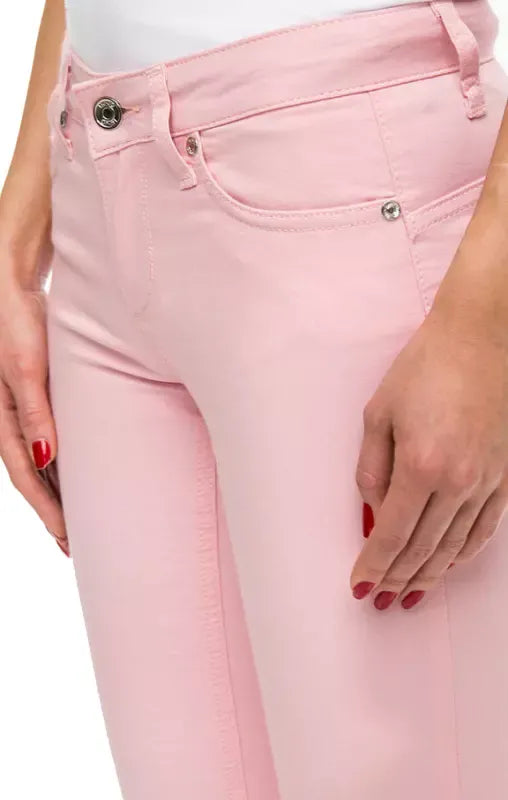 Exude elegance with these high-waisted pink pants, tailored for a sleek and slim fit. The blend of cotton, polyester, and elastane ensures both comfort and a flattering silhouette. Complete with a classic button and zipper closure, these pants are perfect for creating sophisticated looks.