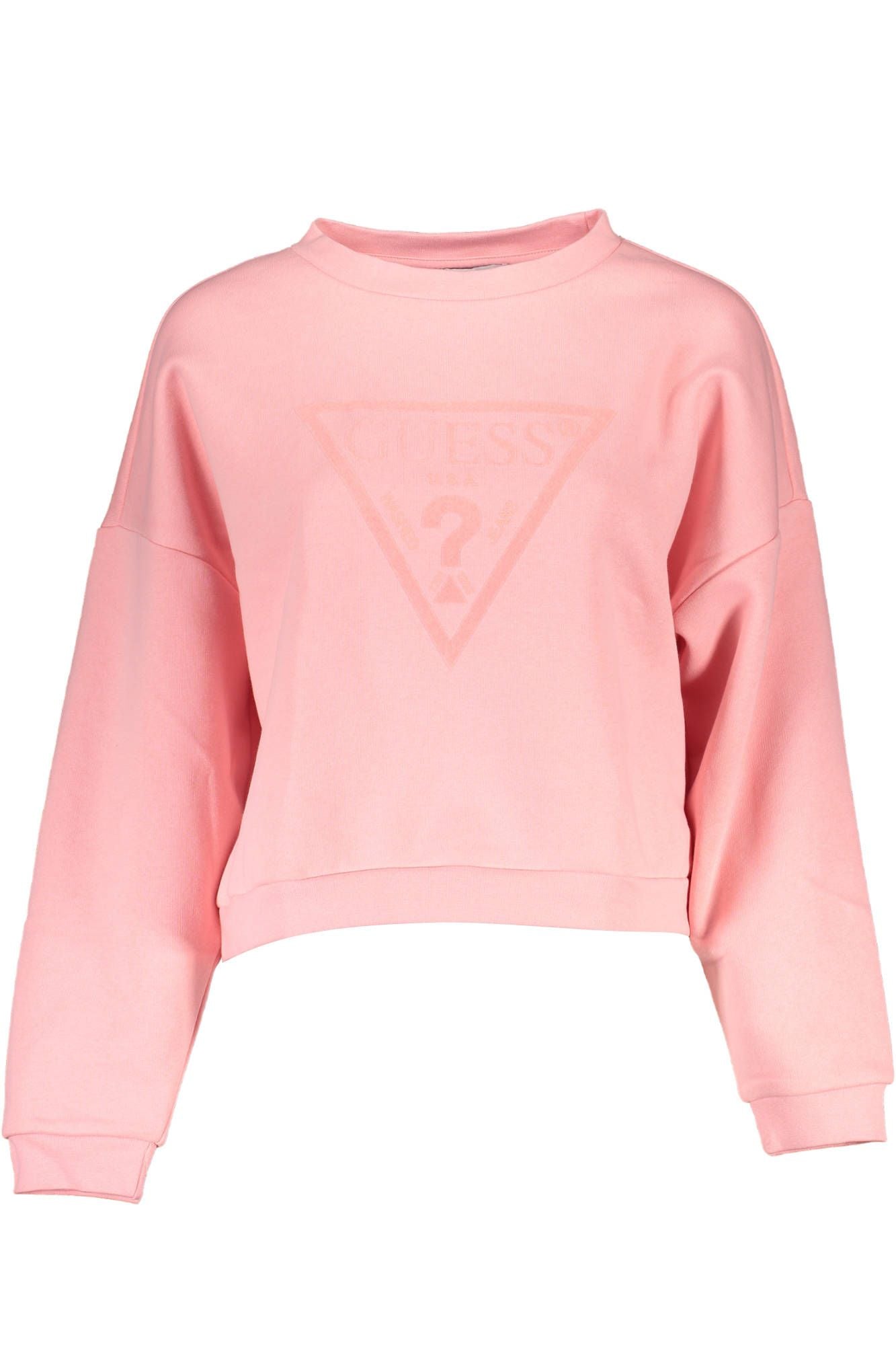 Embrace cozy style with this vibrant long-sleeved sweatshirt from Guess Jeans. Perfect for any casual occasion, it features a classic round neck and a bold print that showcases the iconic Guess logo. Crafted from organic cotton, this sweatshirt is not only stylish but also environmentally conscious. Its soft pink hue adds a touch of femininity to your wardrobe.