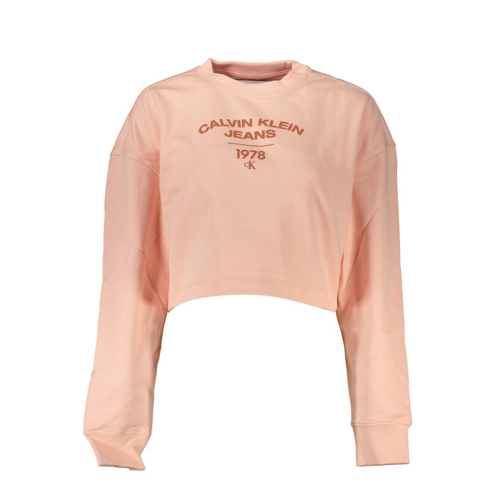 Indulge in the comfort and style of this soft, pink fleece sweatshirt – a transitional essential from Calvin Klein. Perfect for between seasons, it features long sleeves and a classic crew neck, adorned with the iconic logo print. Constructed from a cozy blend of cotton and polyester, this sweatshirt combines effortless style with comfort.