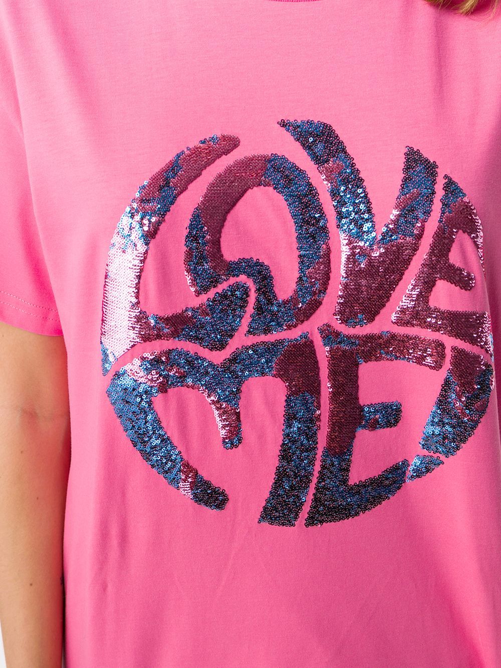 Discover the epitome of casual elegance with this exquisite pink t-shirt. Crafted from 100% organic cotton for unmatched comfort, the shirt features a dazzling touch with sequins appliquéd on the front, creating a unique and sophisticated look. Embrace a relaxed, over-fit silhouette that combines Italian craftsmanship with everyday style.