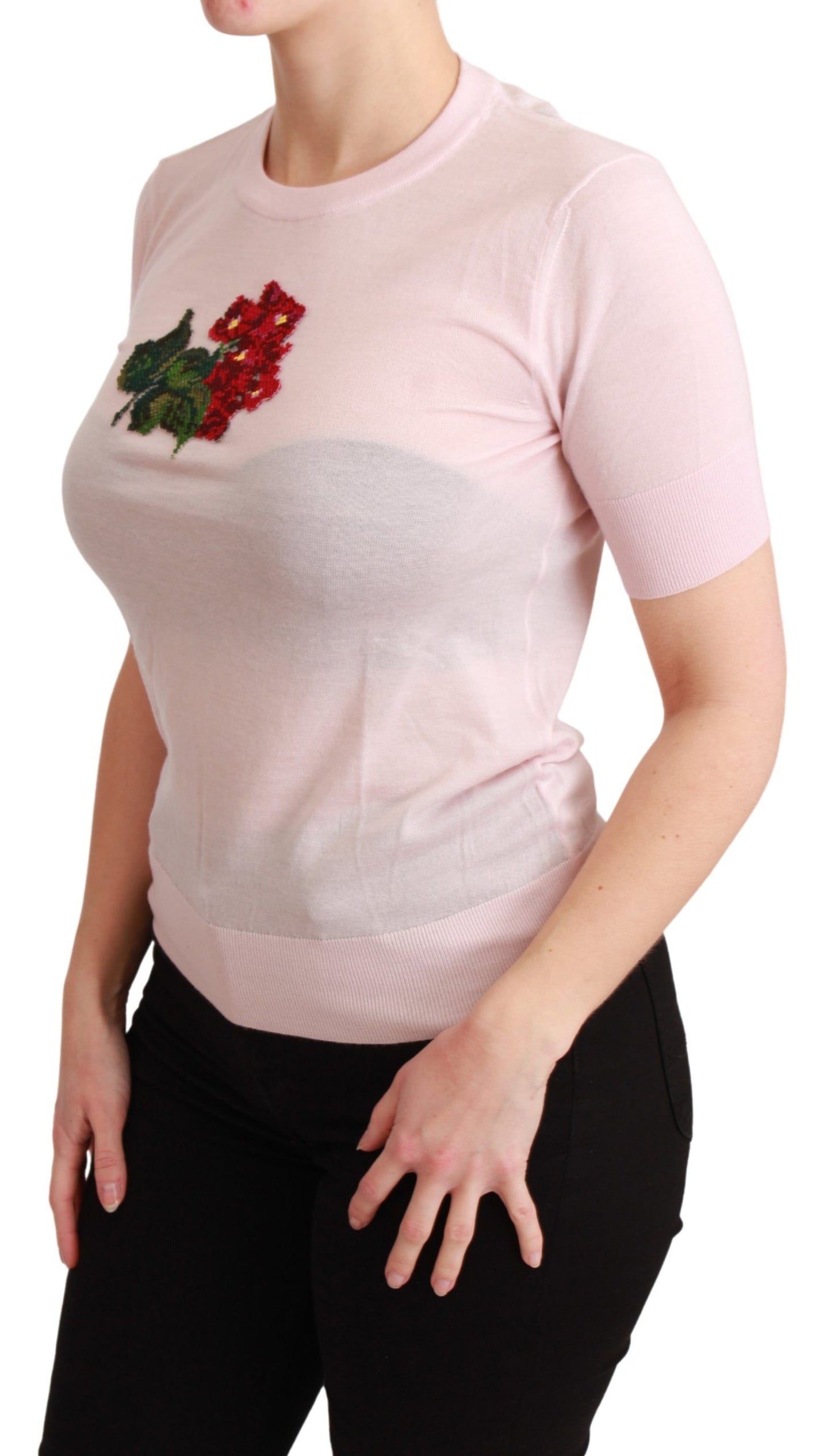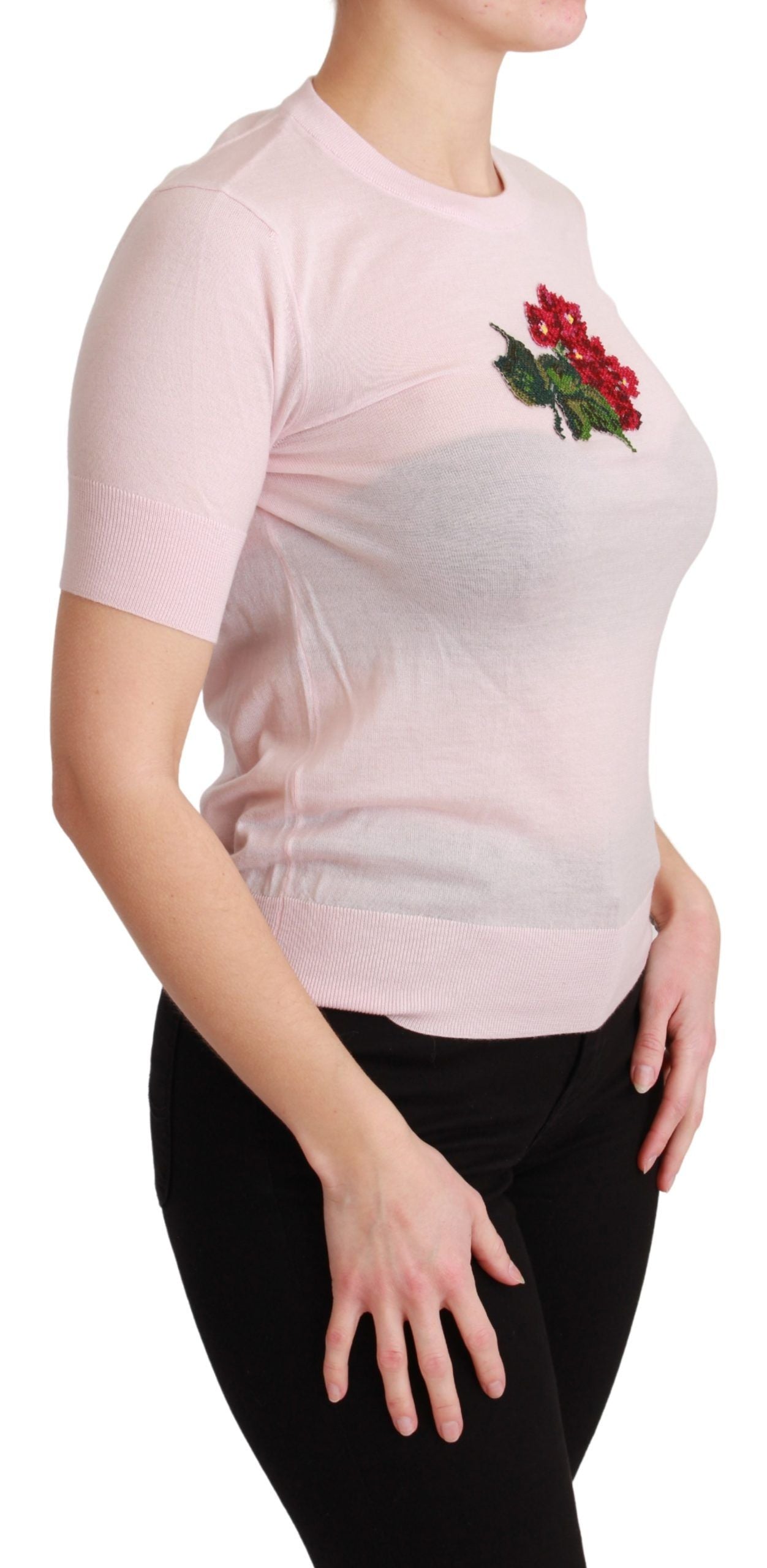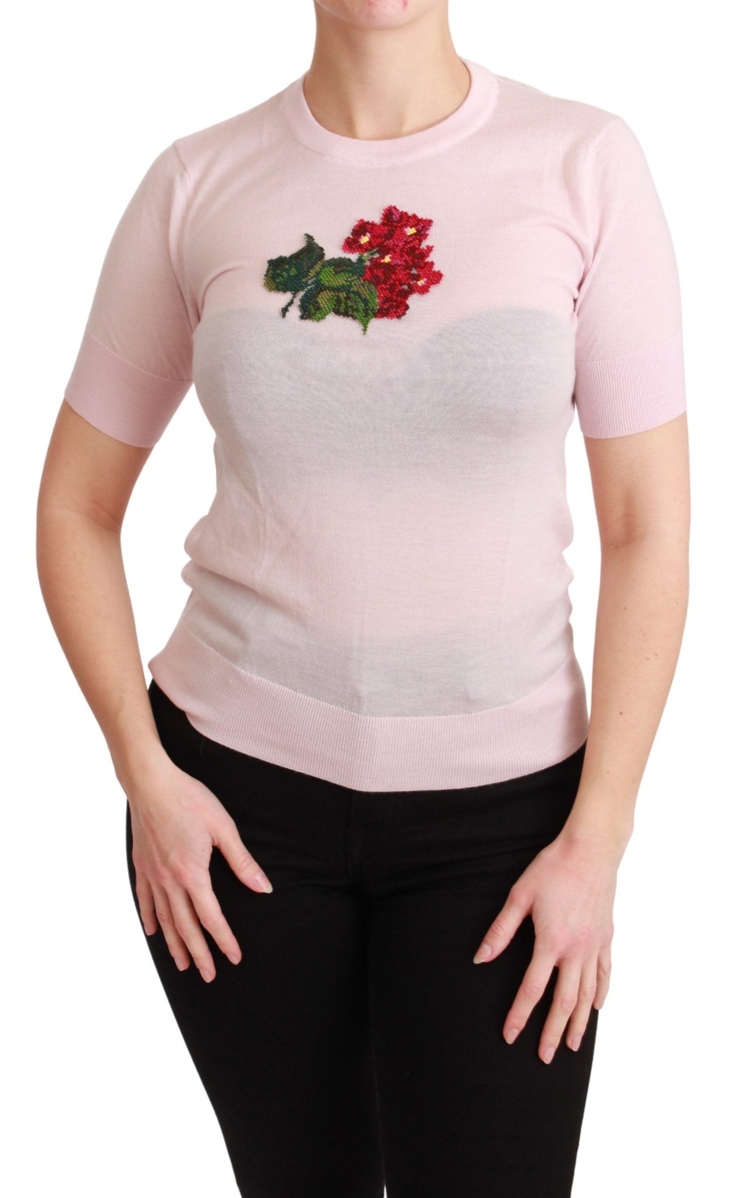 Indulge in the timeless elegance of Dolce & Gabbana with this luxurious Cashmere Floral Embroidered Short Sleeve Top. Designed for the fashion-forward woman, this top is a stunning blend of comfort and style, featuring exquisite floral embroidery that adds a touch of opulence to your ensemble. Perfect for both casual and formal occasions, this piece is an essential addition to your curated wardrobe, guaranteed to turn heads and make a statement. Proudly made in Italy, it exemplifies the brand’s commitment to superior craftsmanship and attention to detail.