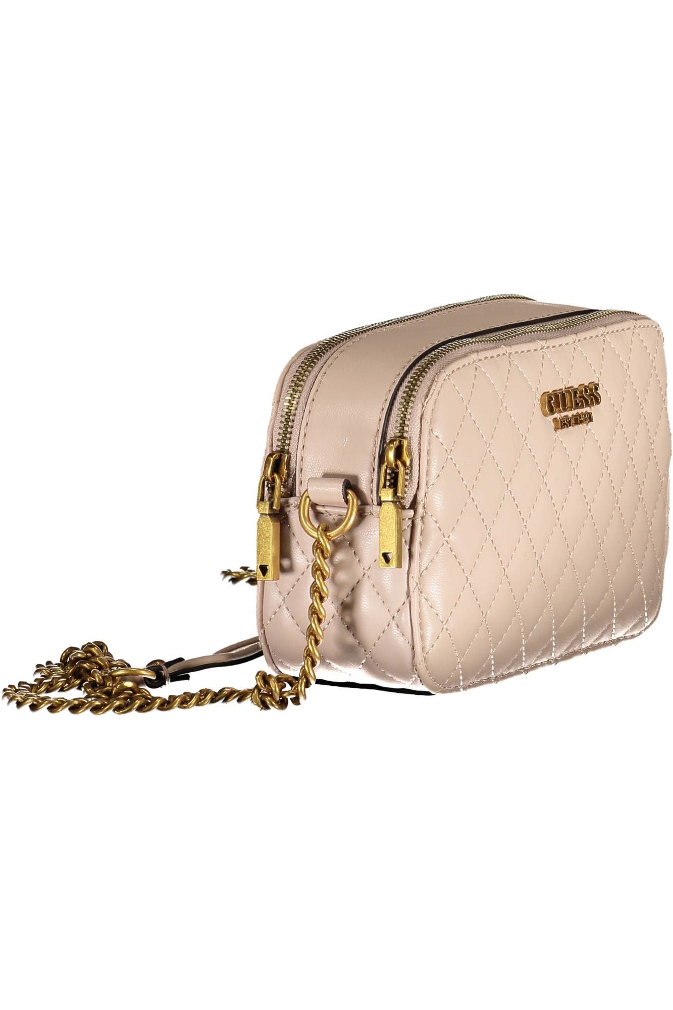 Step out in style with this elegant shoulder bag, perfect for adding a splash of color and sophistication to any outfit. The charming pink hue is complemented by eye-catching contrasting details, while the practical chain strap adds both fashion and function. Designed to keep your essentials organized, the bag features two compartments, an inside pocket, and dedicated card-sized spaces to effortlessly store and locate your items. With a secure zip closure and the prominent Guess Jeans logo, this accessory is not only an expression of impeccable taste but also a nod to renowned quality and design.
