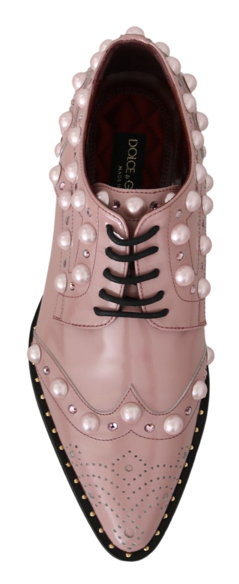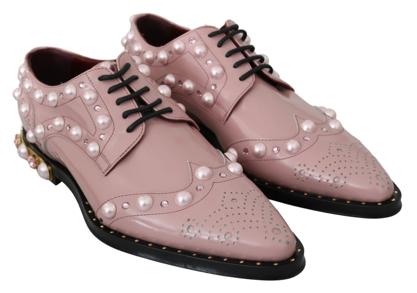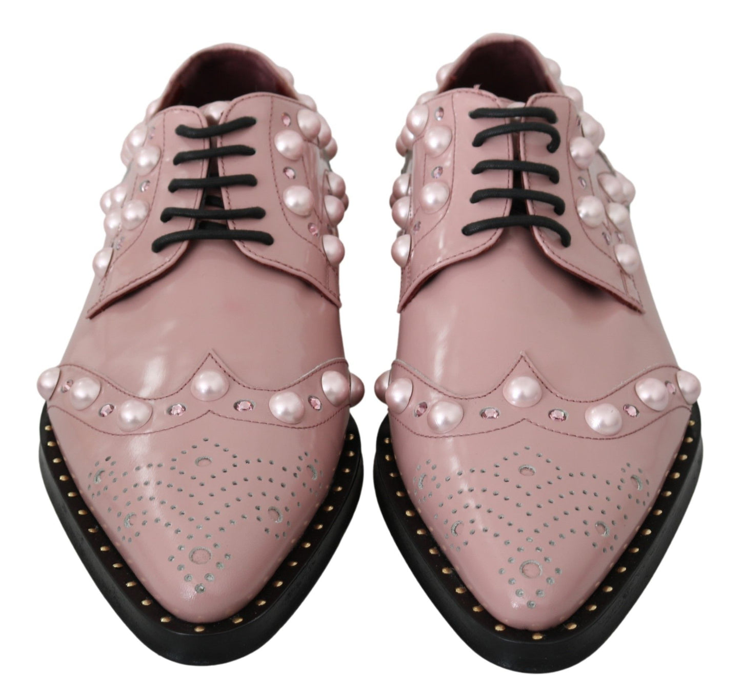 Step into a world of elegance with these gorgeous Dolce & Gabbana women’s lace-up flats. Exquisitely crafted in Italy, these shoes boast a stunning pink hue complemented by dazzling pink crystals and white pearls. The luxurious leather composition and meticulous detailing make these flats a true representation of high craftsmanship. Perfect for formal occasions, they offer both style and comfort. Elevate your shoe collection with this exclusive pair.