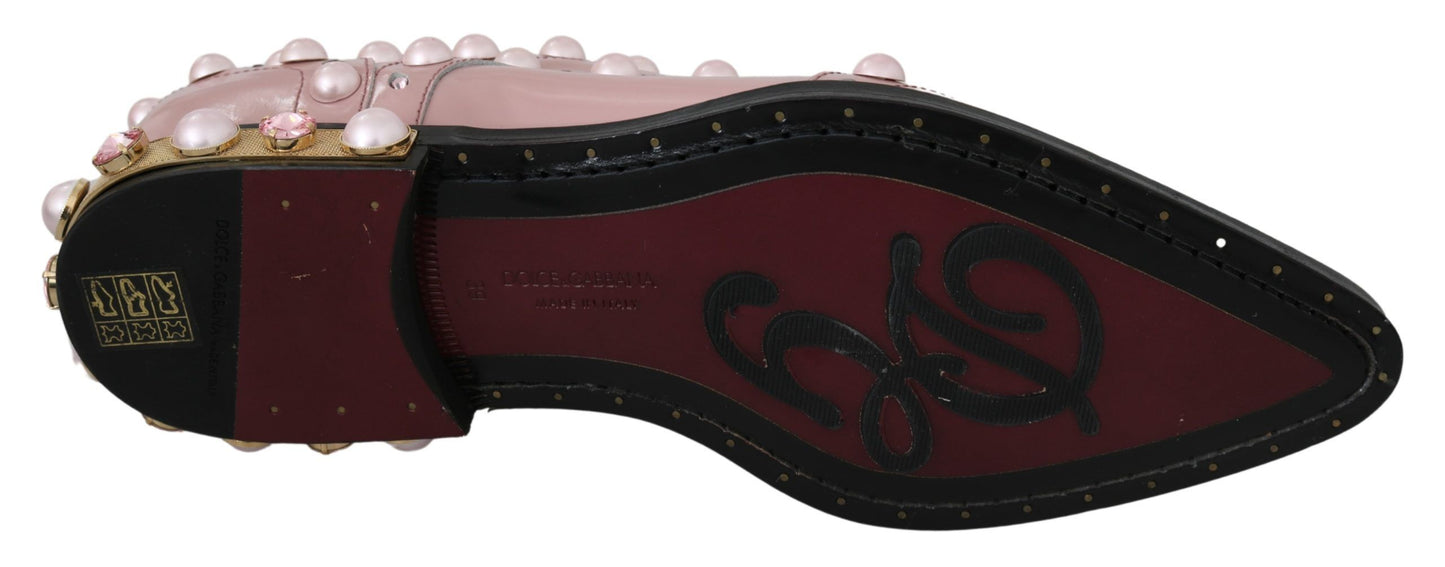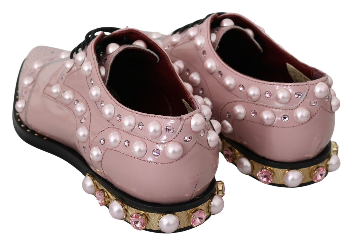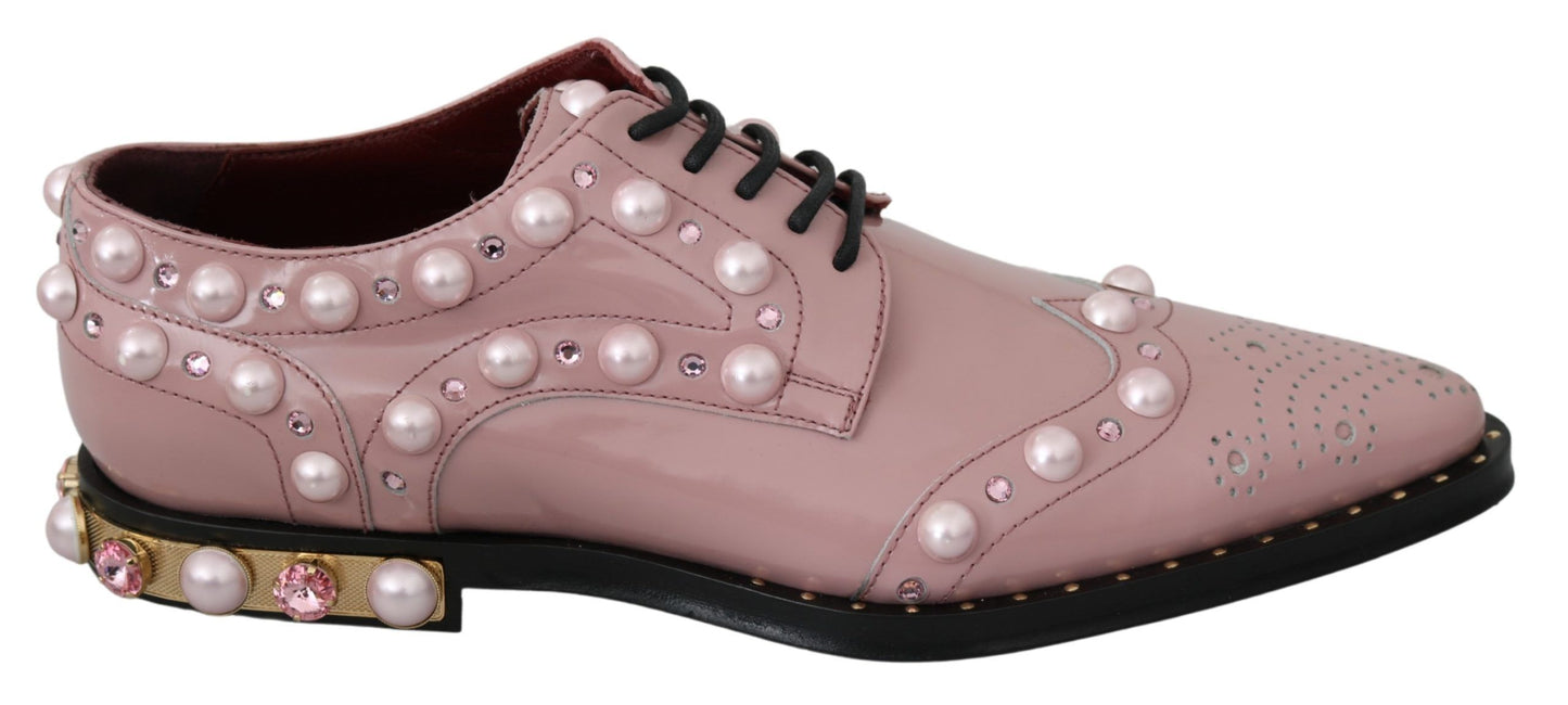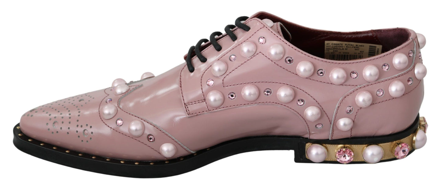 Step into a world of elegance with these gorgeous Dolce & Gabbana women’s lace-up flats. Exquisitely crafted in Italy, these shoes boast a stunning pink hue complemented by dazzling pink crystals and white pearls. The luxurious leather composition and meticulous detailing make these flats a true representation of high craftsmanship. Perfect for formal occasions, they offer both style and comfort. Elevate your shoe collection with this exclusive pair.
