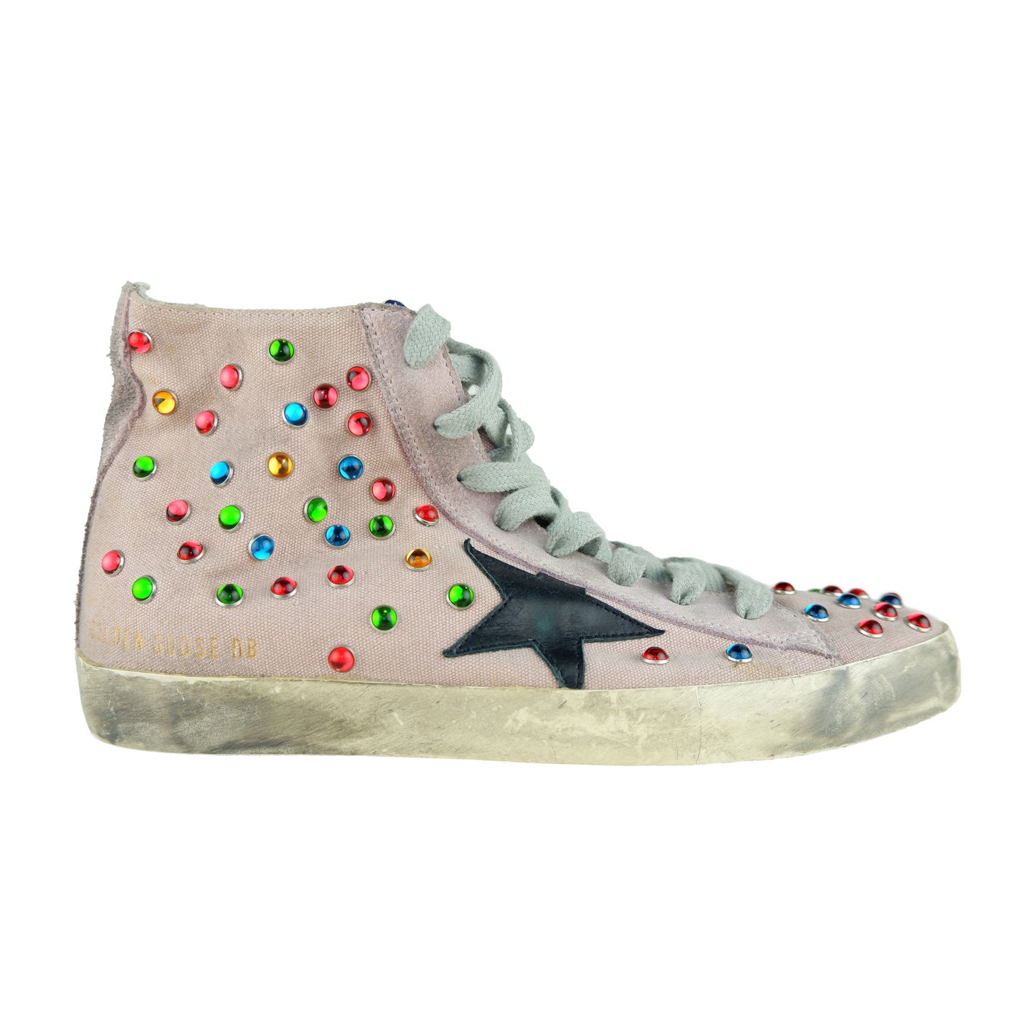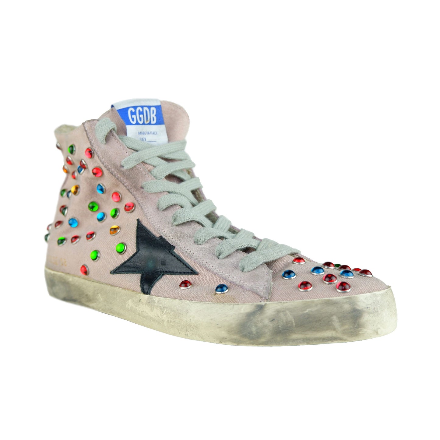 Step out in style with these eye-catching calfskin sneakers, adorned with colorful beads on pink cotton canvas for an exquisite touch of elegance. The luxurious suede heel counter, alongside the iconic black leather star logo, exudes a timeless appeal. Crafted with attention to detail in Italy, these sneakers feature a premium leather composition and a durable rubber sole, ensuring both comfort and sophistication with every stride.