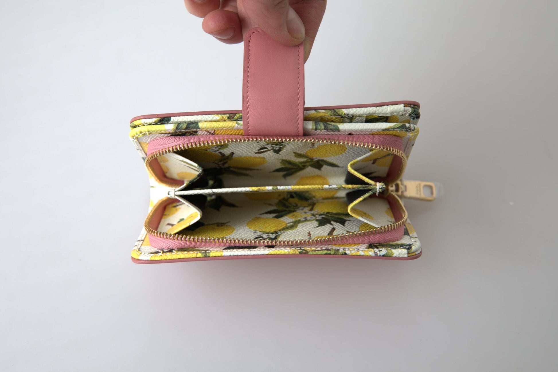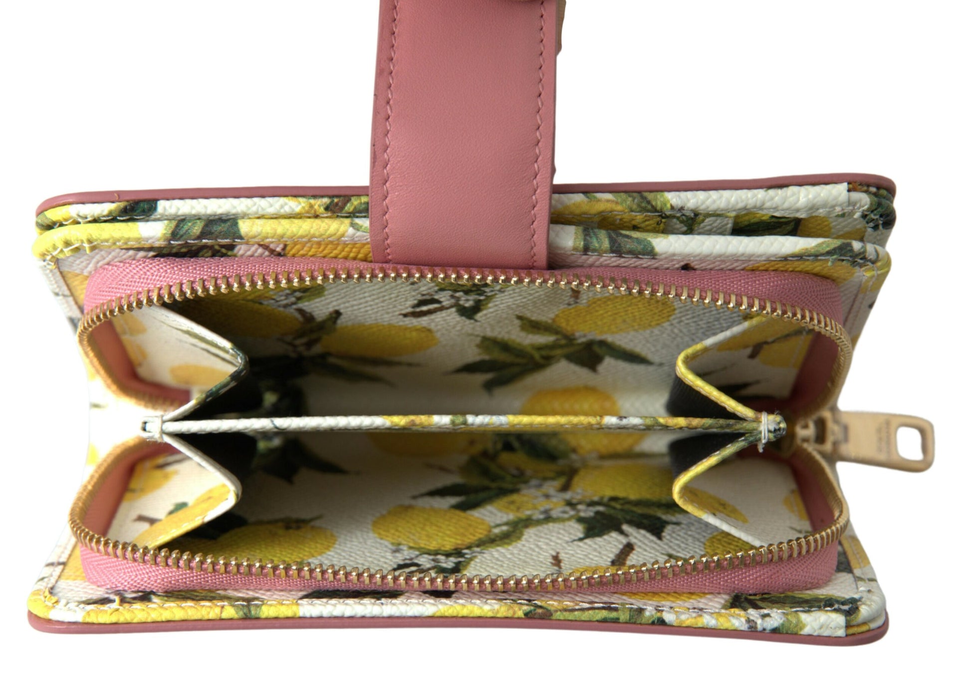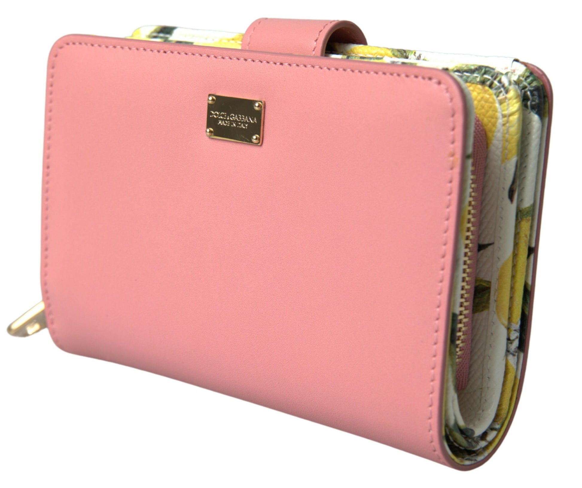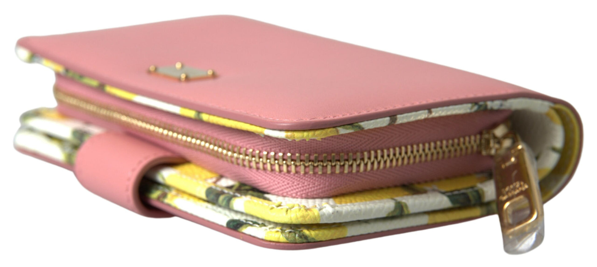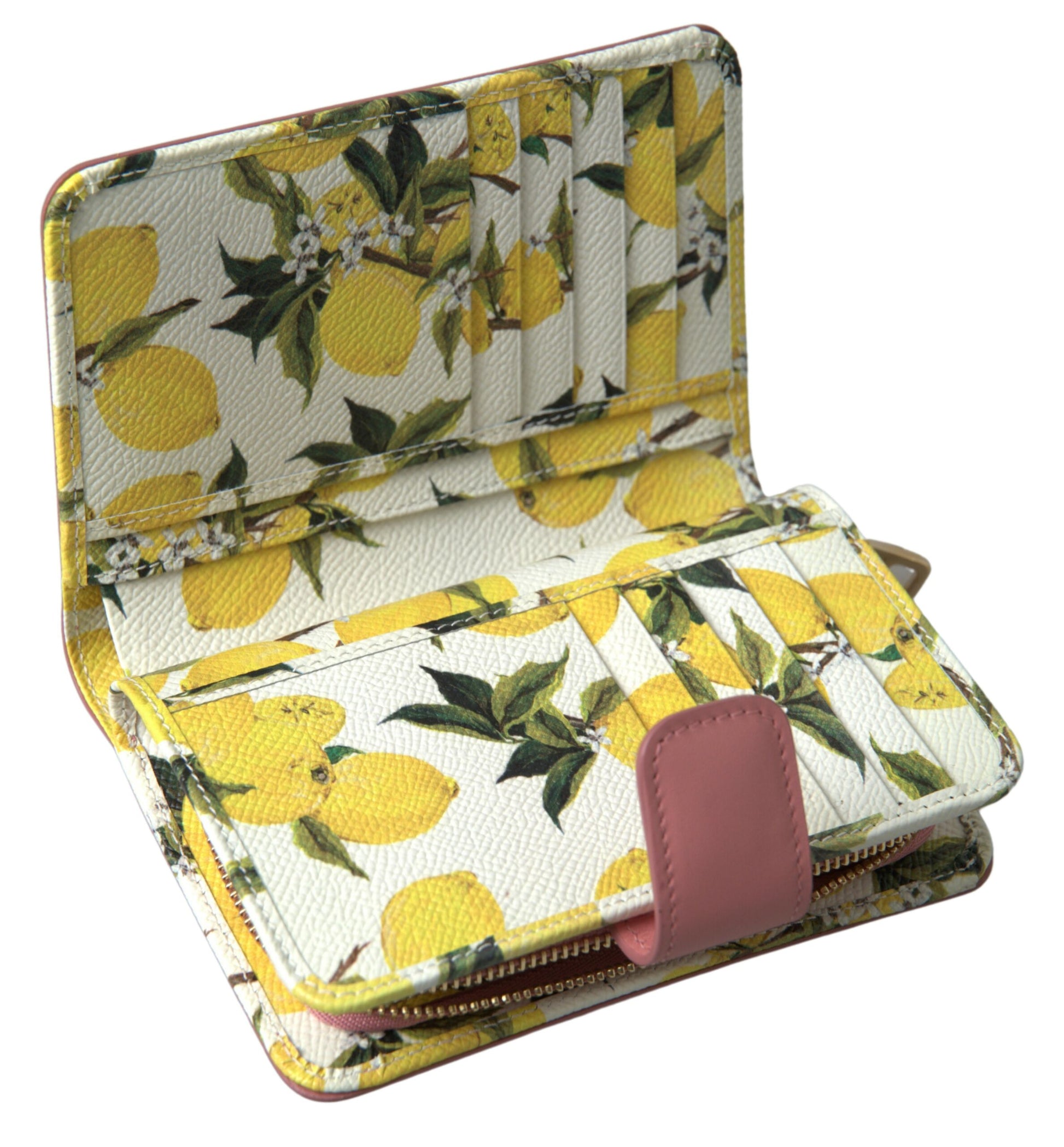 Introducing the epitome of sophistication – a stunning and brand new accessory, complete with tags and original box. This 100% Authentic Dolce & Gabbana wallet is not just a statement piece but also a practical companion for your everyday luxury. The elegant pink leather exterior is complimented by a charming lemon print lining, while the shiny gold DG logo plaque adds a touch of opulence. Secure your essentials with the reliable zipper closure. Crafted with precision in Italy, this wallet is a blend of style and function.