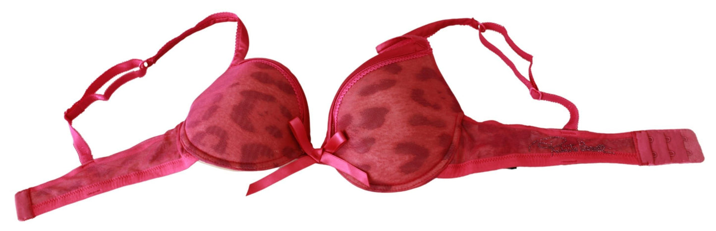 Elegant Pink Leopard Push Up Bra