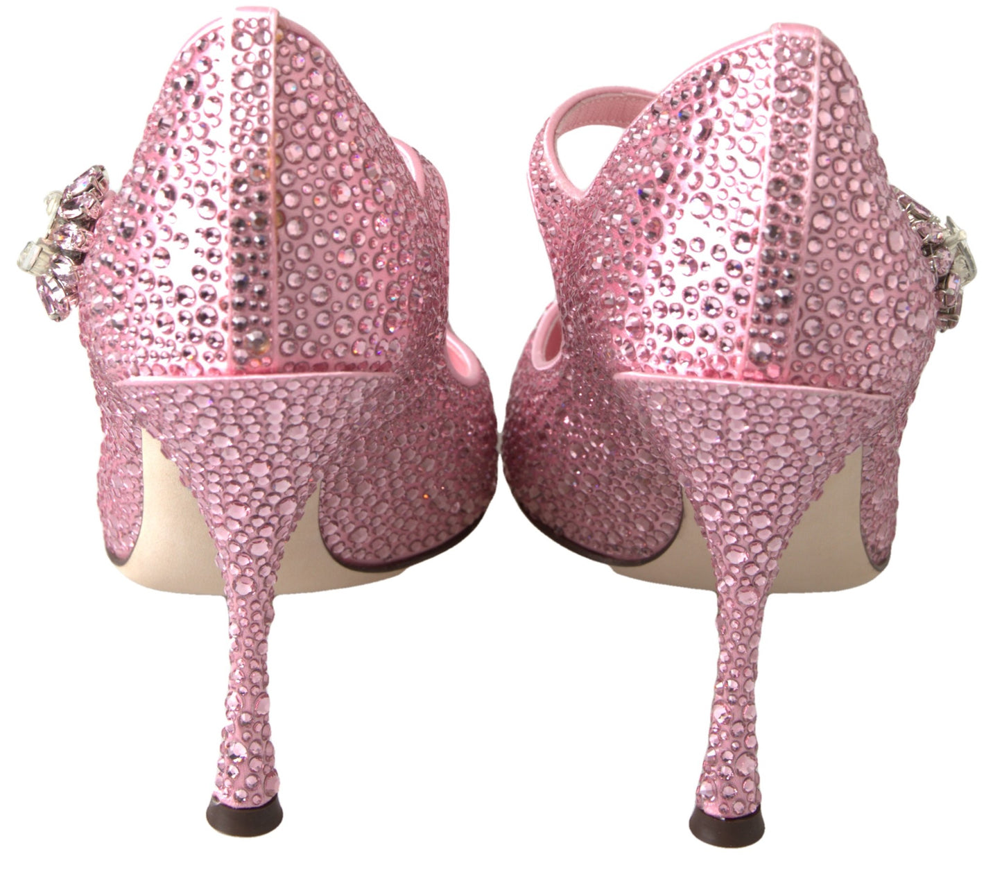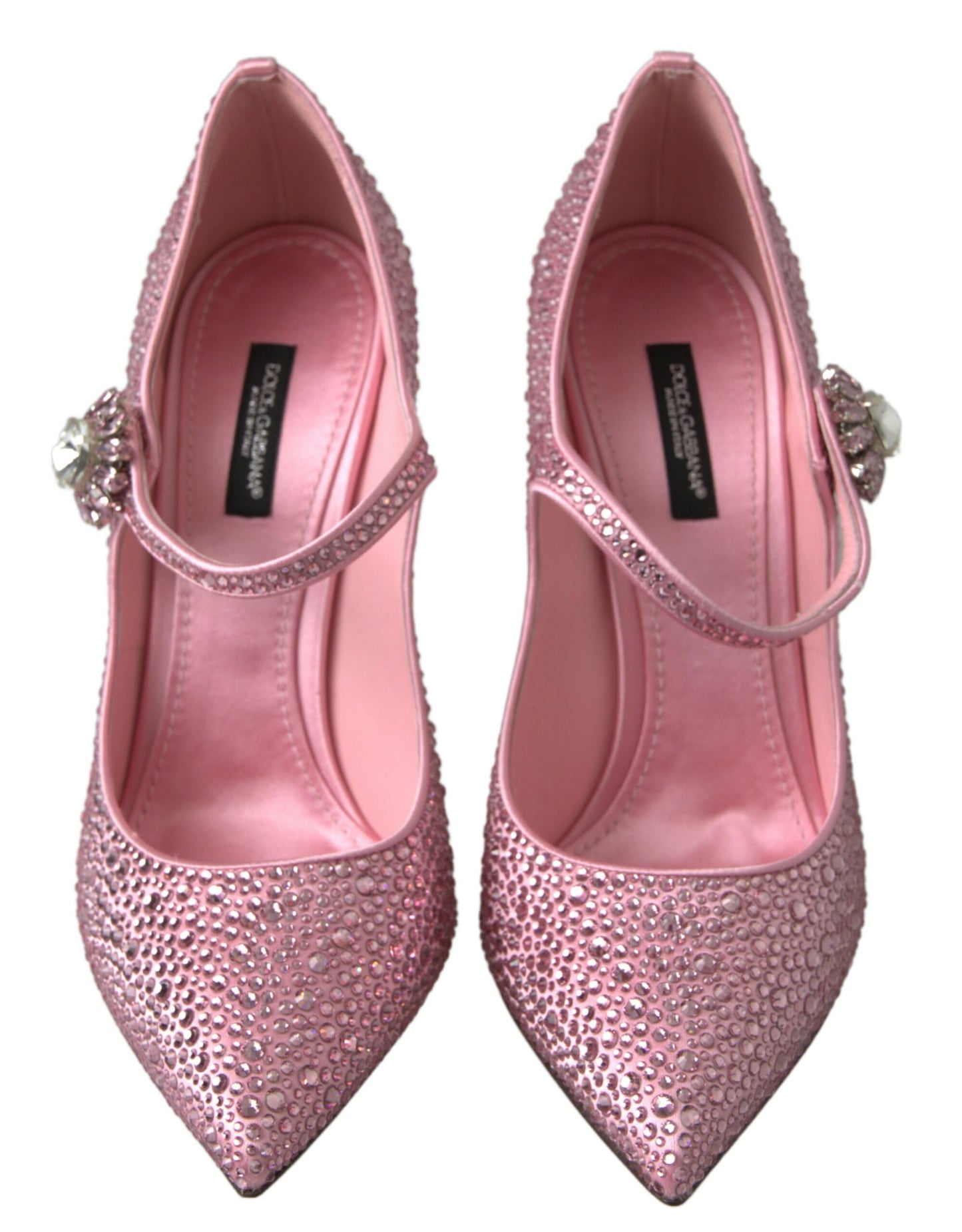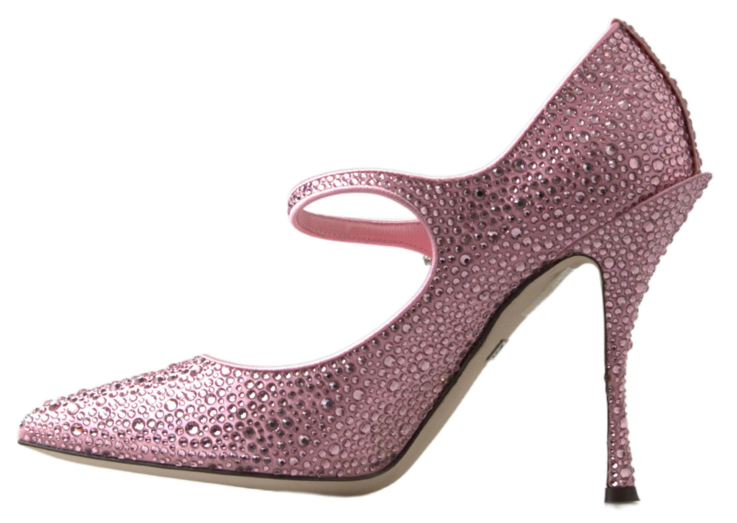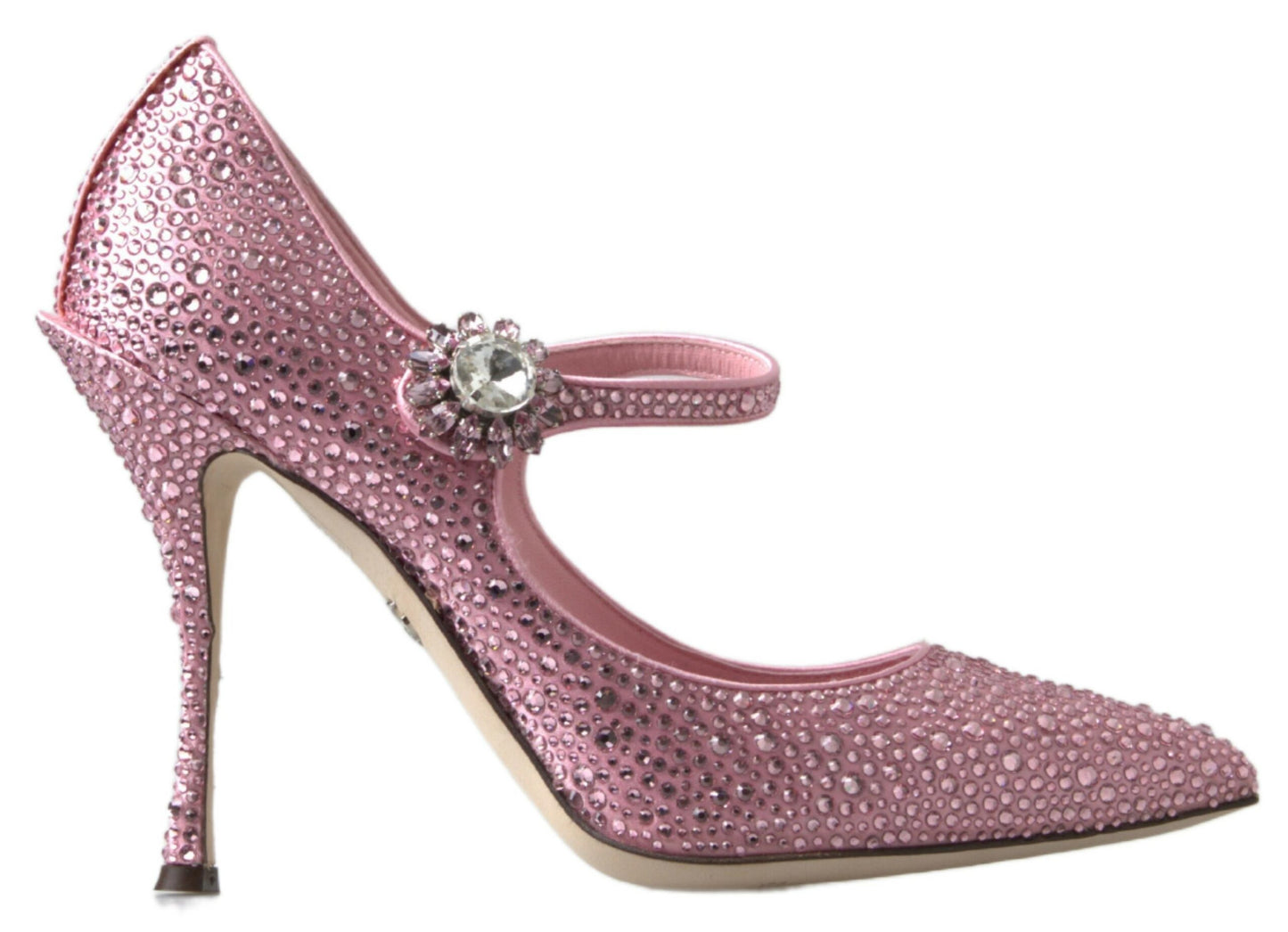 Step into luxury with these exquisite Dolce & Gabbana Mary Jane pumps, a stunning addition to your footwear collection. Featuring a captivating crystal-embellished strap and a central brooch, these pumps exude elegance with a classic pointed toe design. Crafted with a blend of viscose and silk, these shoes are not only breathtakingly gorgeous but are designed to provide superior comfort and quality. Perfect for high-class events or a night out, they offer a touch of sparkle that will complete any sophisticated ensemble.