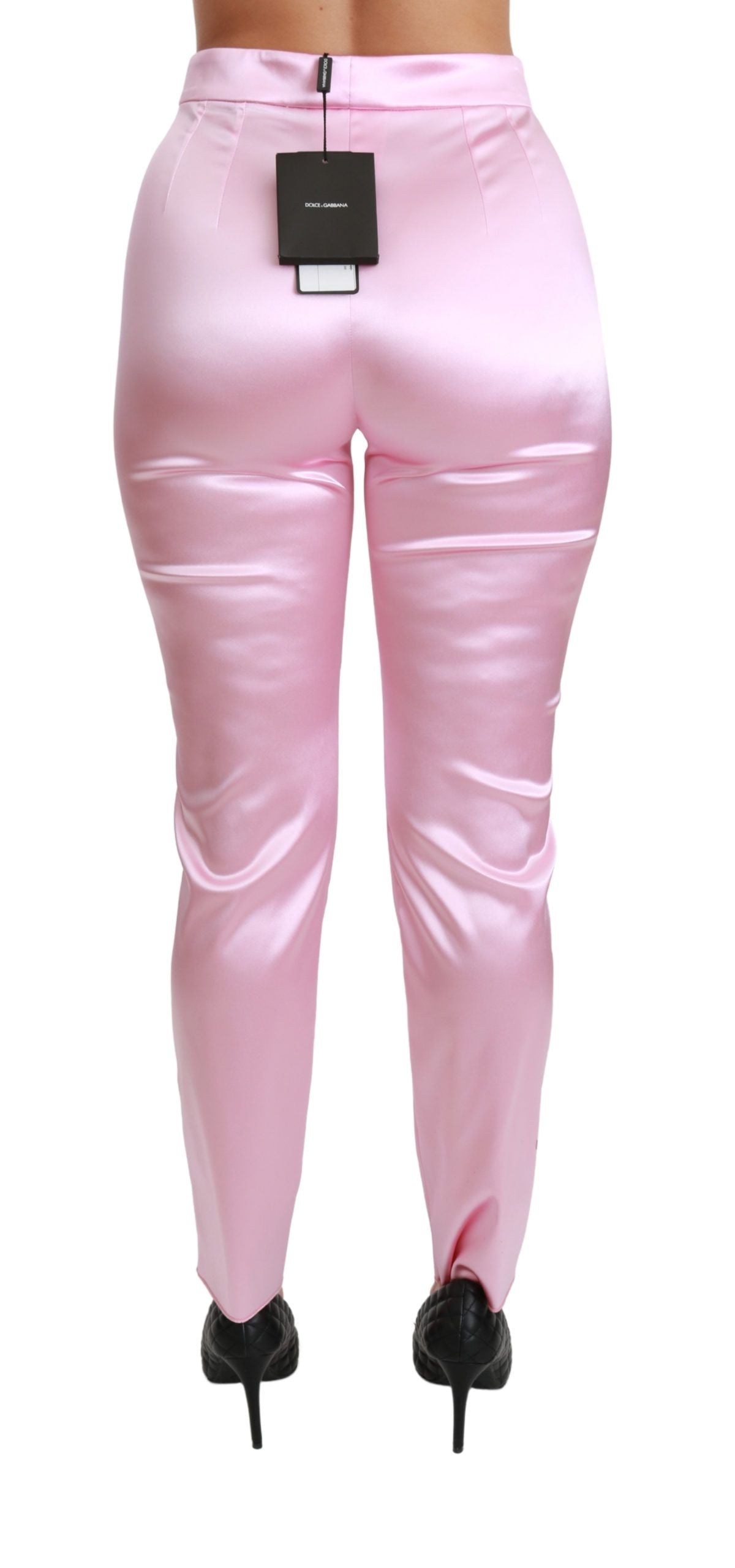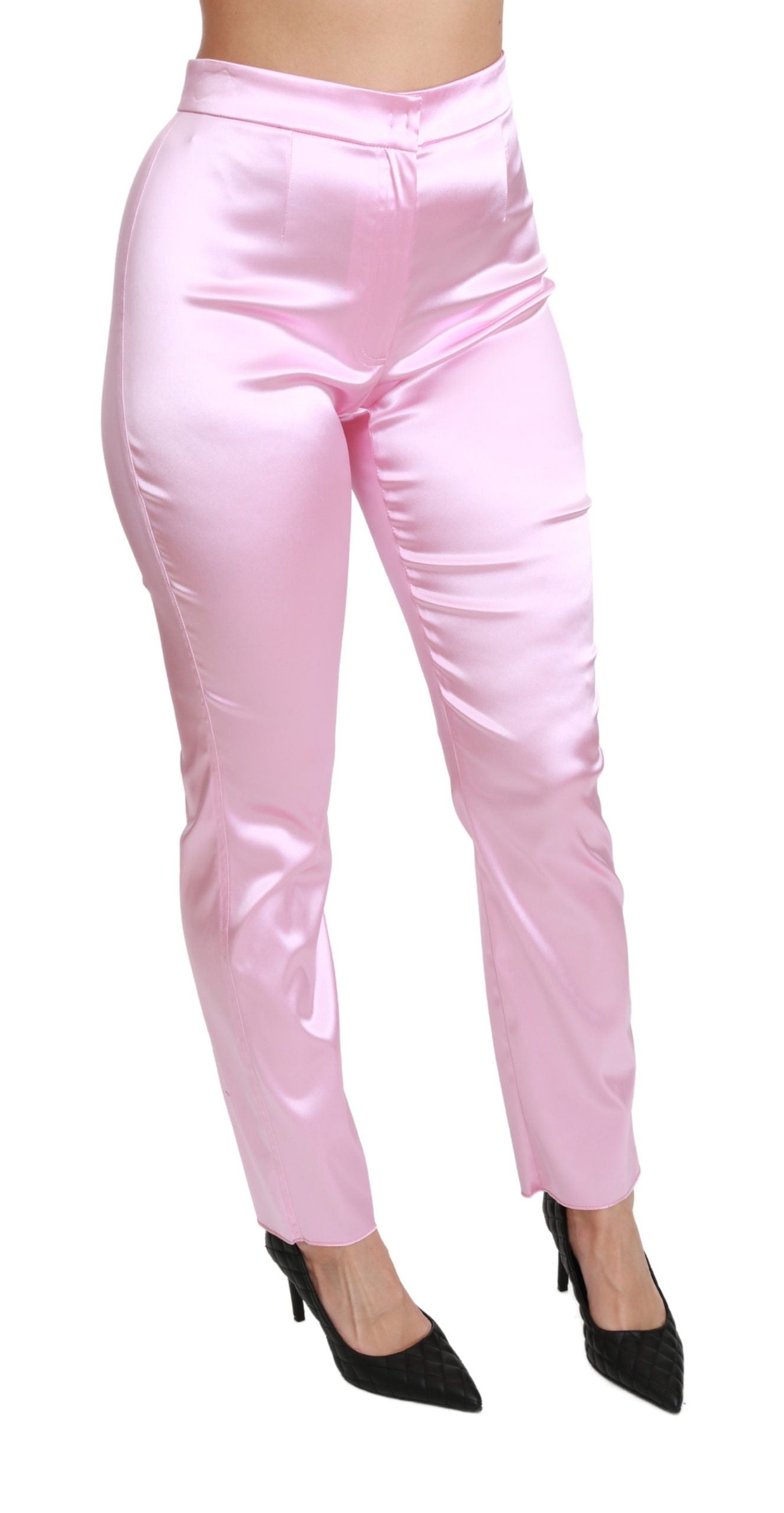 Indulge in the epitome of Italian luxury with these exquisite Pink Metallic Trousers from Dolce & Gabbana. These glamorous pants, brand new with tags, are a perfect blend of style and comfort, destined to become a standout piece in your wardrobe.