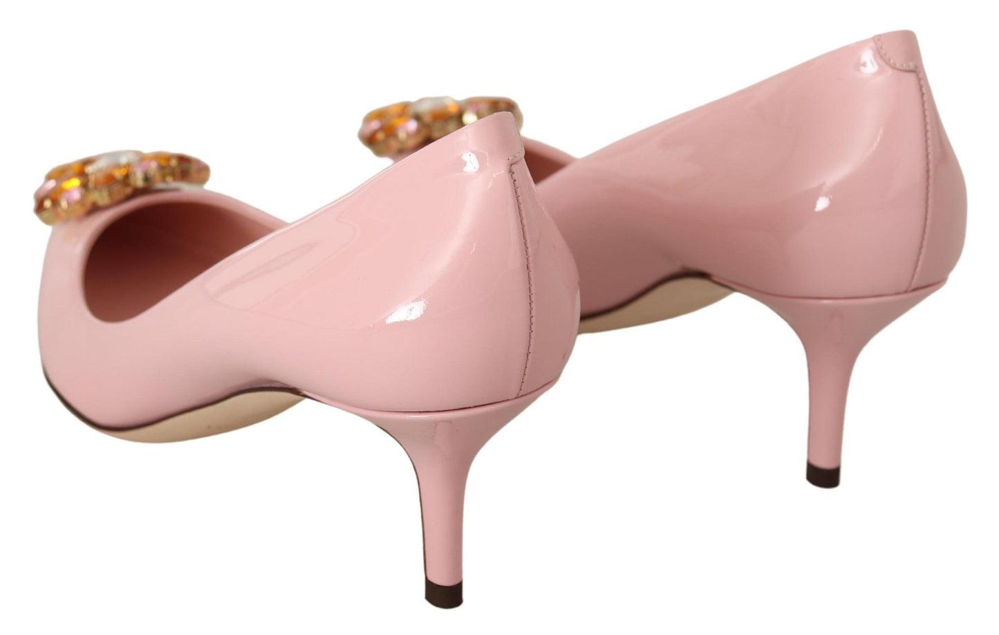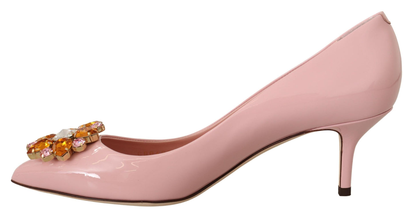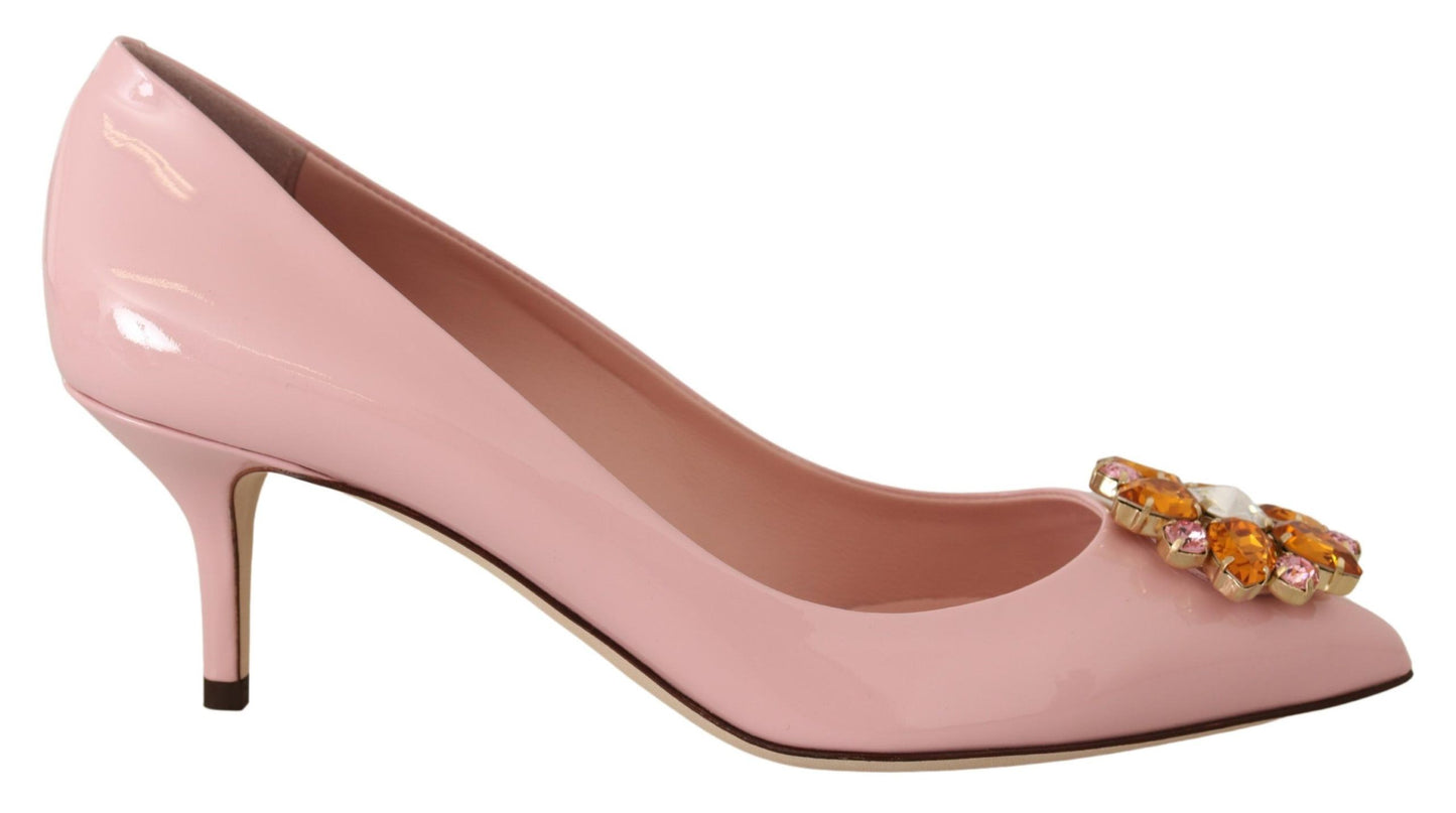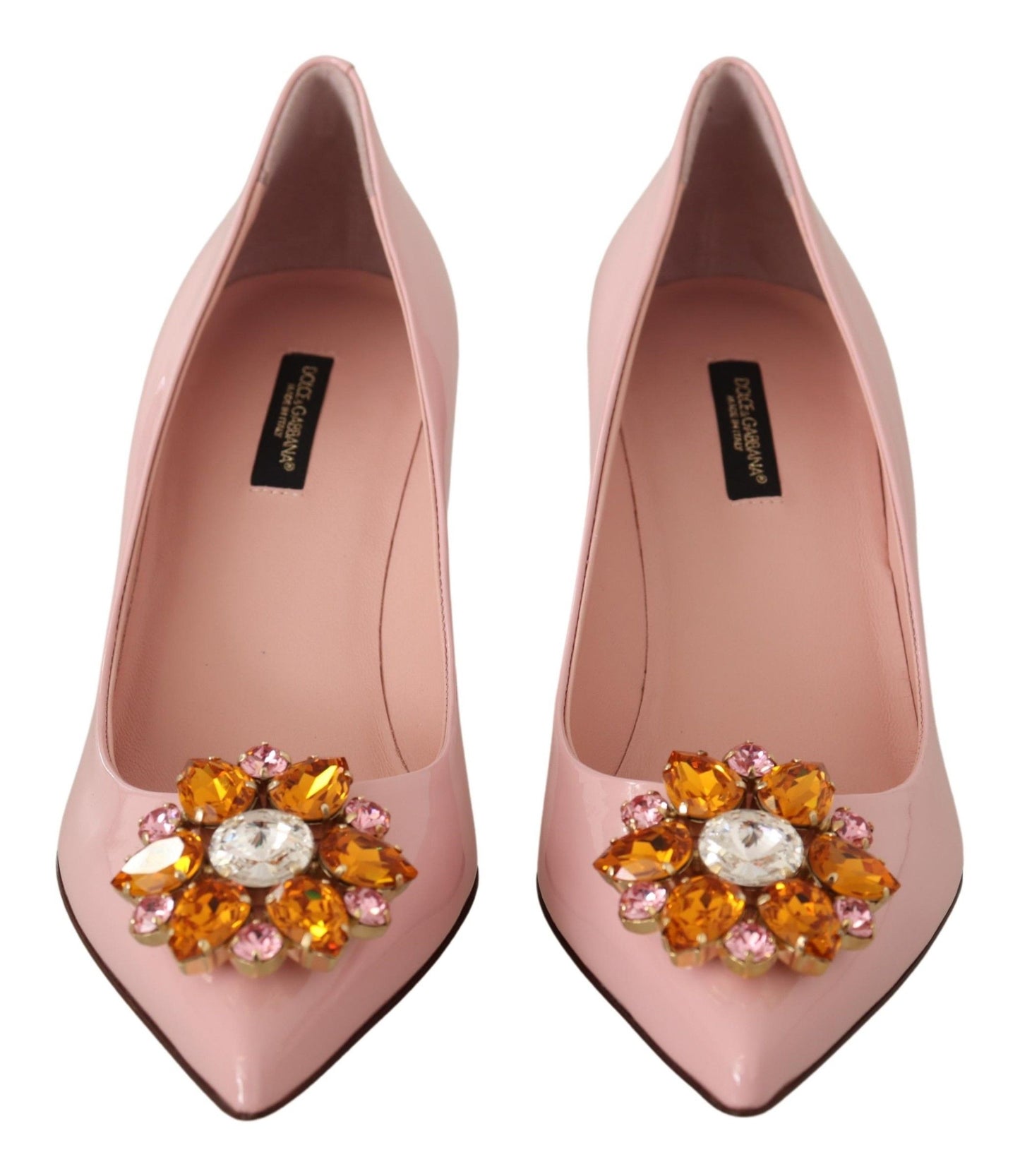 Indulge in the epitome of luxury with these stunning, new with tags, 100% Authentic patent leather pumps from Dolce & Gabbana. Adorned with dazzling crystals in shades of orange, pink, and white, these heels epitomize sophistication and high fashion with every step. Crafted in Italy, they promise utmost quality and comfort, perfect for elevating any ensemble.