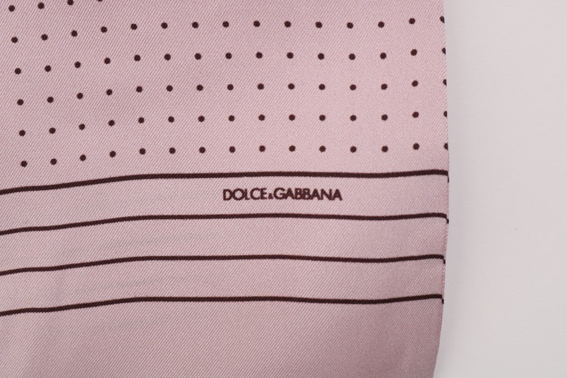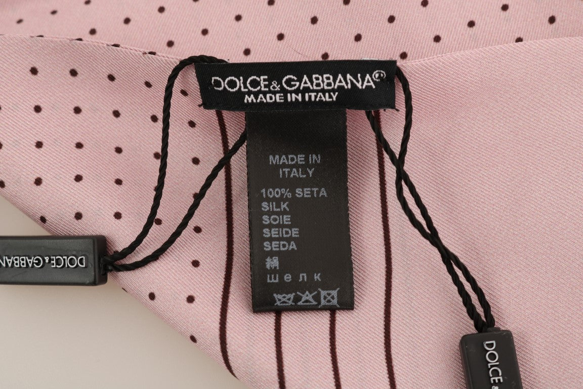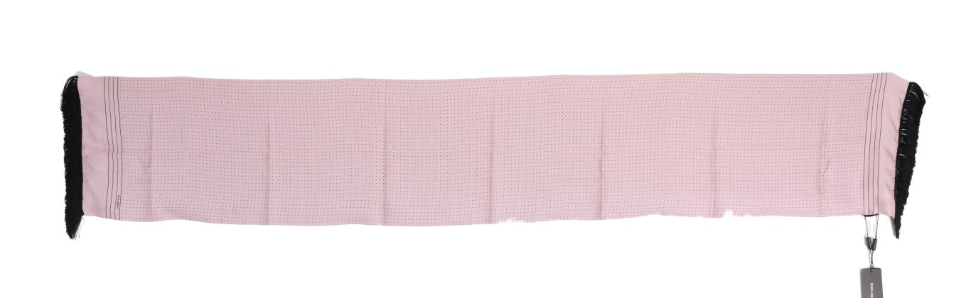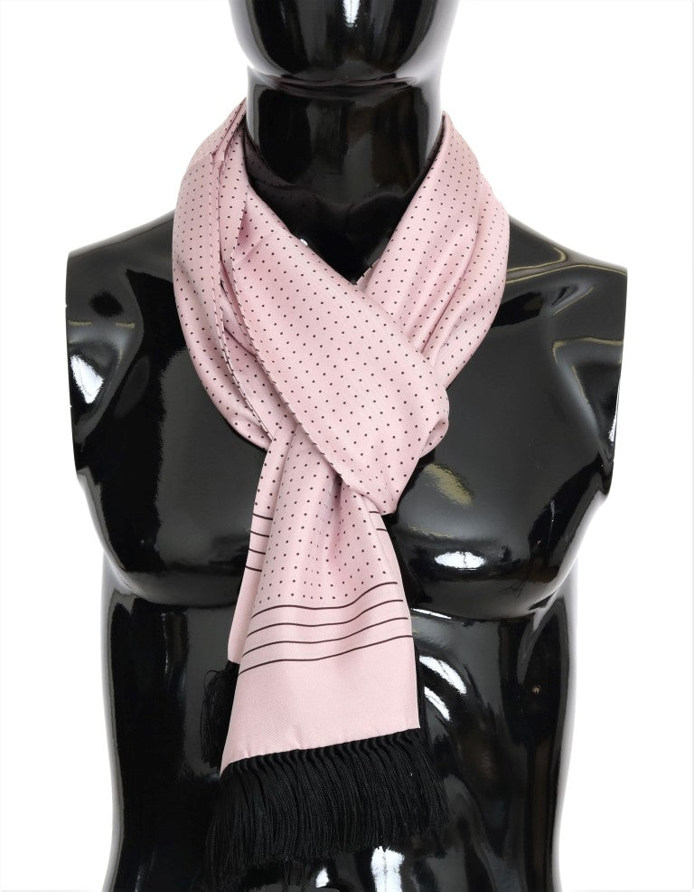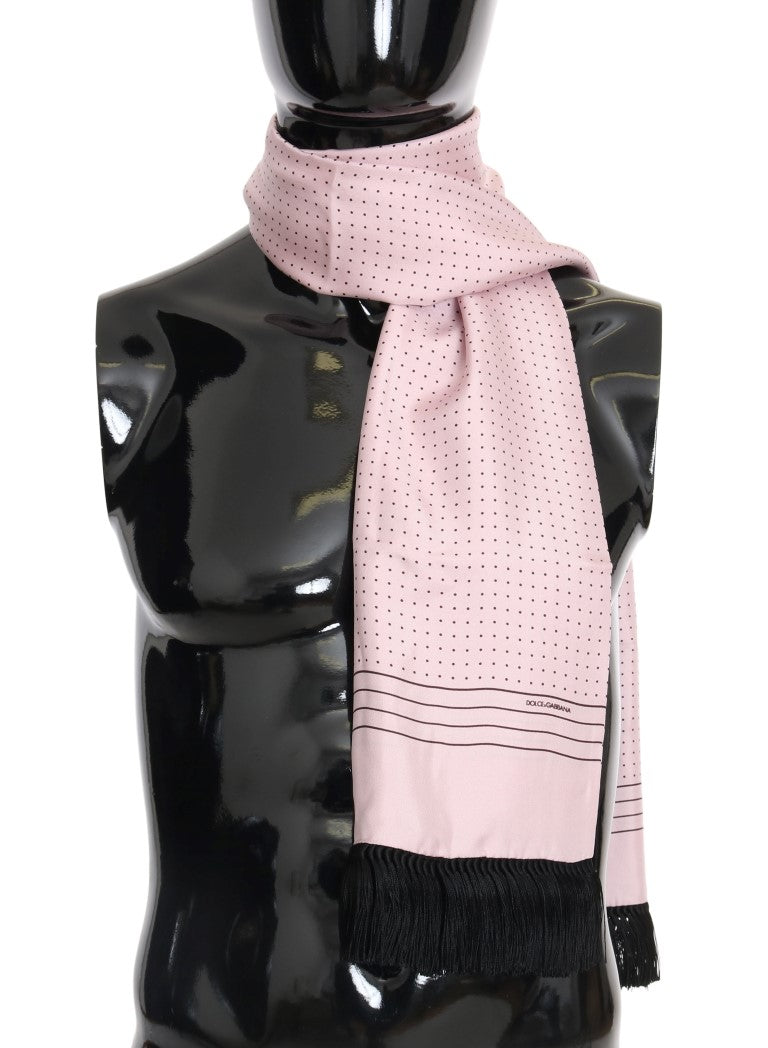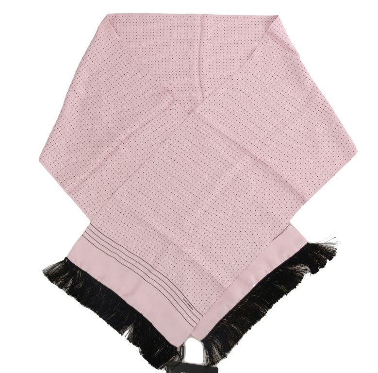 Enrich your style with a touch of luxury with this exquisite Dolce & Gabbana Men’s Scarf. This brand-new, authentic piece is not just a winter staple but a statement accessory that promises elegance and sophistication. Its soft 100% silk material guarantees comfort and warmth, while the playful pink hue adorned with bordeaux polka dots adds a dash of color to any outfit. Finished with chic fringes and the distinguished Dolce & Gabbana logo, this Italian-made scarf is a timeless addition to your wardrobe.