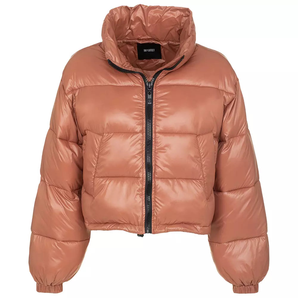 Discover the epitome of winter chic with Imperfect’s short down jacket. Crafted from high-quality 100% polyamide, this pink jacket combines style and functionality seamlessly. Adorned with two convenient side pockets and a secure zip closure, it’s the perfect piece to elevate your cold-weather ensemble.