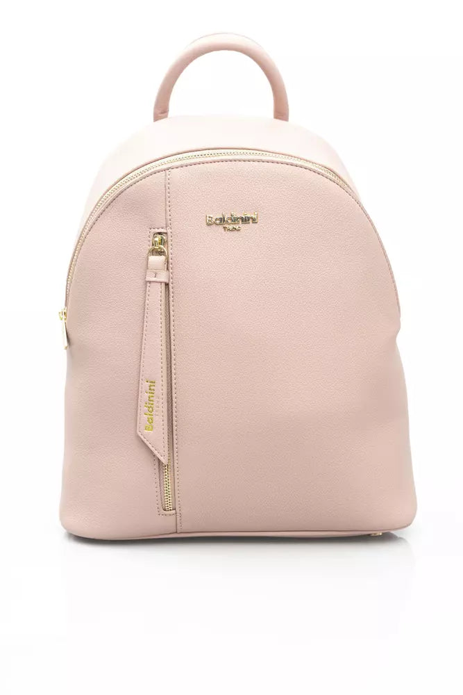 Explore the sleek sophistication of the ‘Baldinini Trend’ backpack, designed to cater to both your fashion sense and functional needs. This elegant pink backpack features a secure zip closure, ensuring your belongings are always safe. The generous interior comprises multiple compartments to keep your essentials organized, while the front pocket provides quick access to smaller items. Crafted for comfort, it boasts adjustable shoulder straps tailored to your preferred fit. The golden details add a touch of luxury to your daily ensemble, complemented by the prominent front logo that speaks of quality and style.