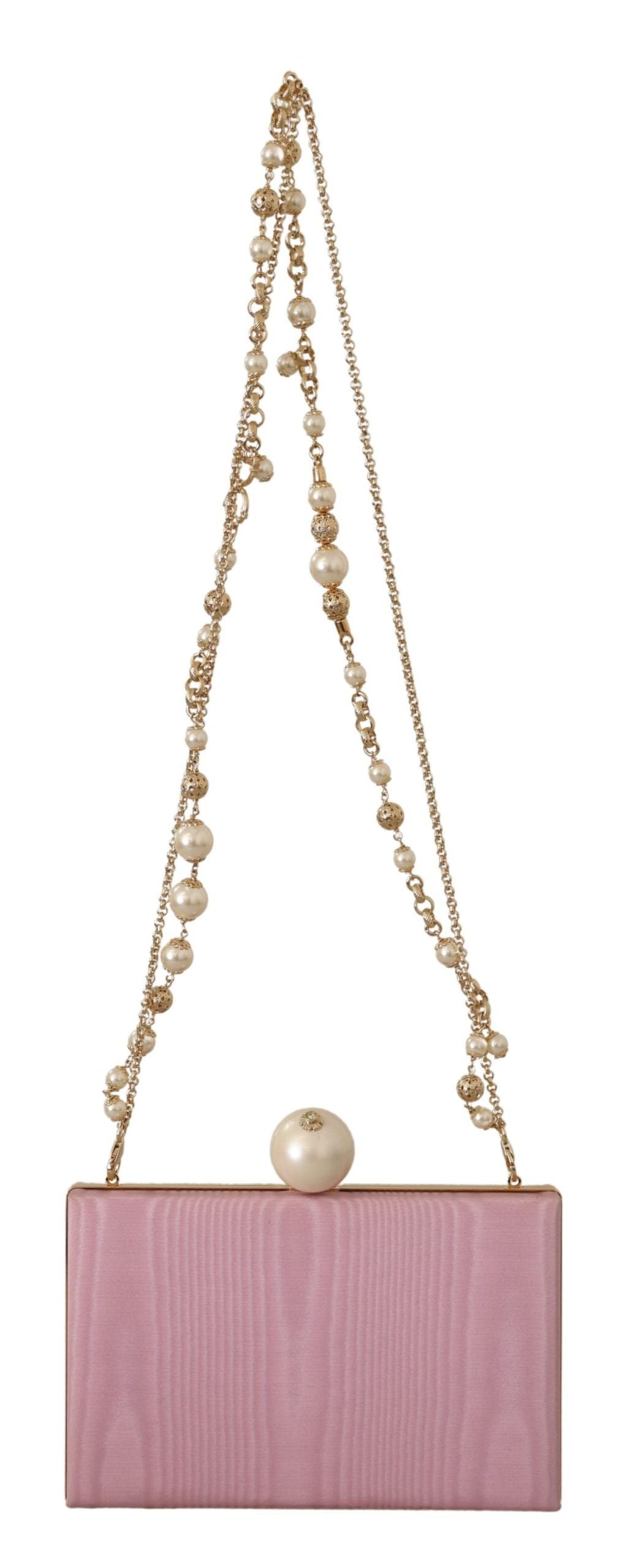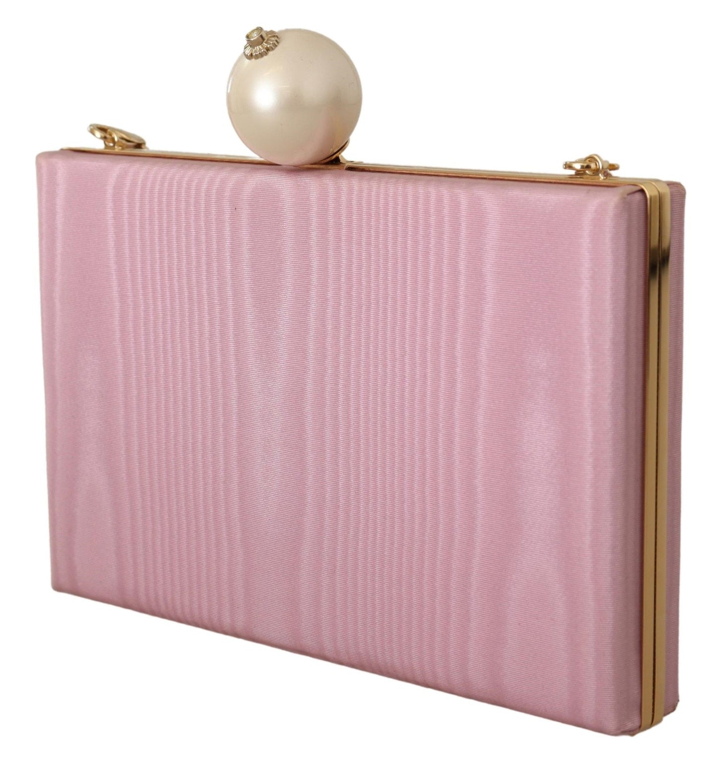 Indulge in the epitome of elegance with this stunning Dolce & Gabbana silk crossbody bag, crafted for the fashion-forward individual. Adorned with a golden frame lock featuring a mother-of-pearl detail for a touch of opulence, this minaudière boasts a delicate chain embellished with small charms and the iconic baroque DG monogram. An exquisite blend of luxury and craftsmanship, this Italian-made accessory is perfect for elevating your evening ensemble.