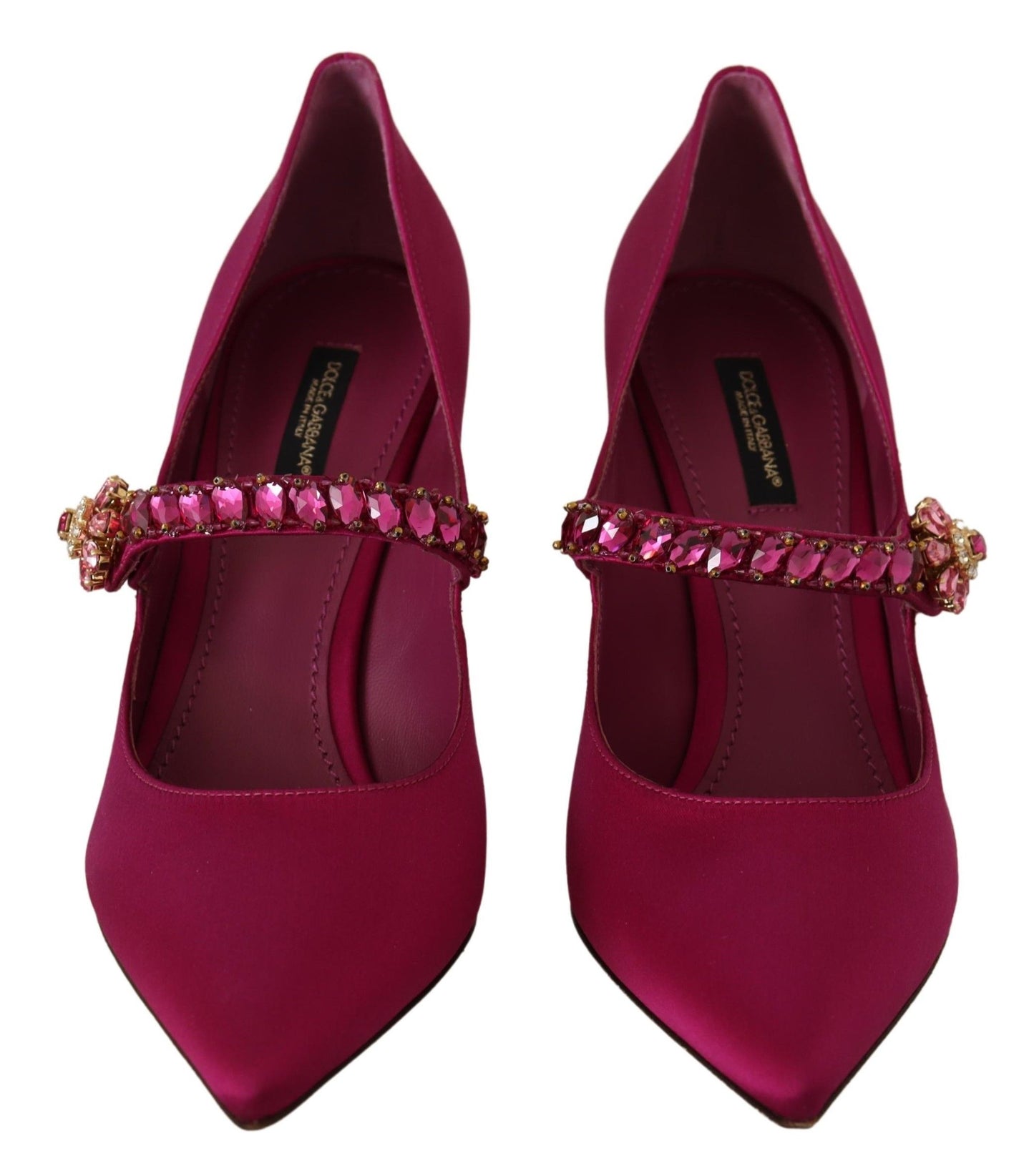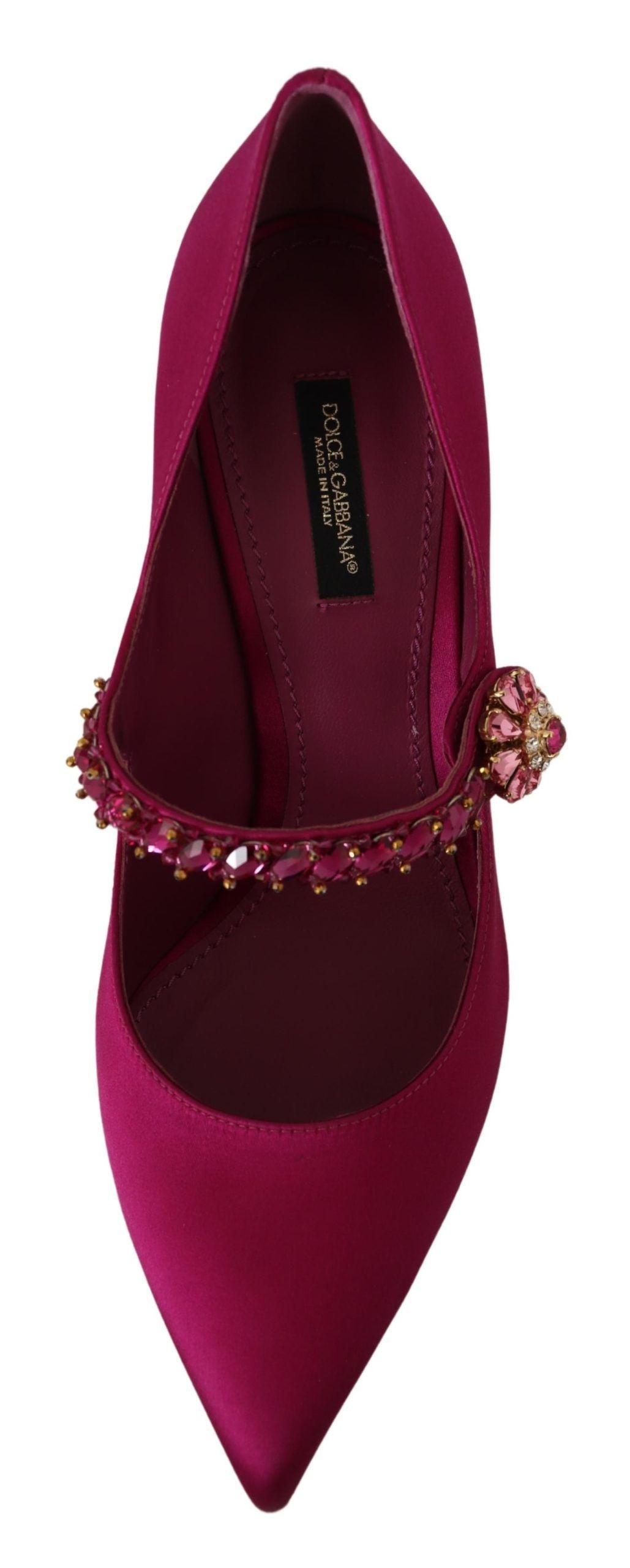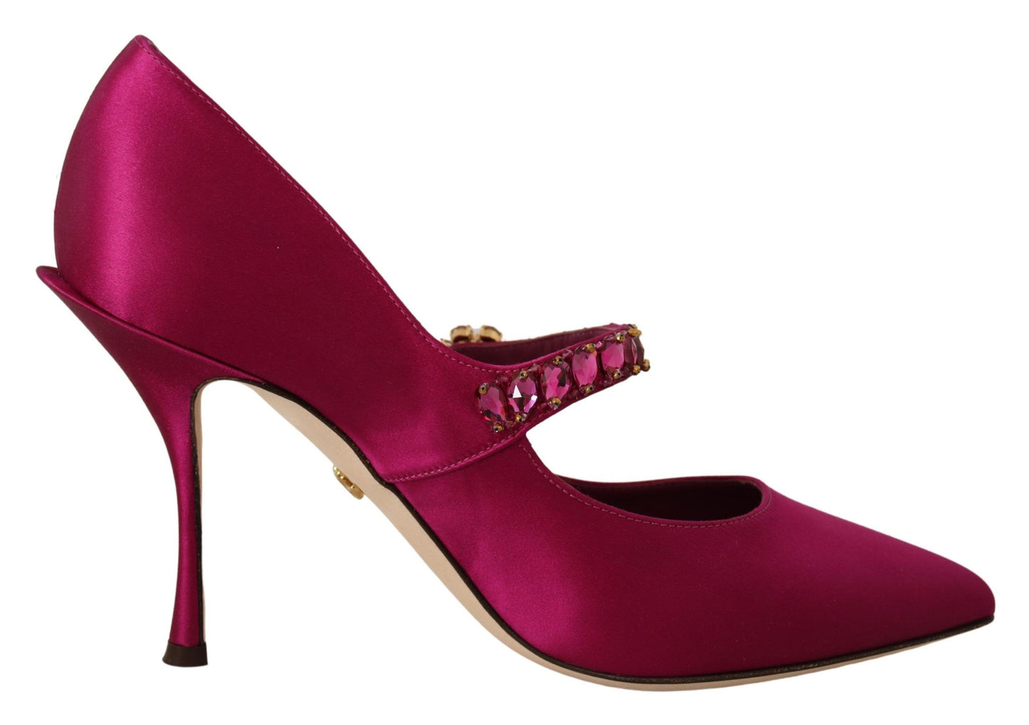 Step into a world of elegance with these stunning Dolce & Gabbana Pink Satin Stilettos, adorned with eye-catching crystals and a dazzling brooch at the center. Perfectly crafted for the fashion-forward woman, these Mary Jane pumps boast impeccable comfort and quality, with every step reflecting Italian craftsmanship. Ideal for adding a touch of glam to any ensemble!