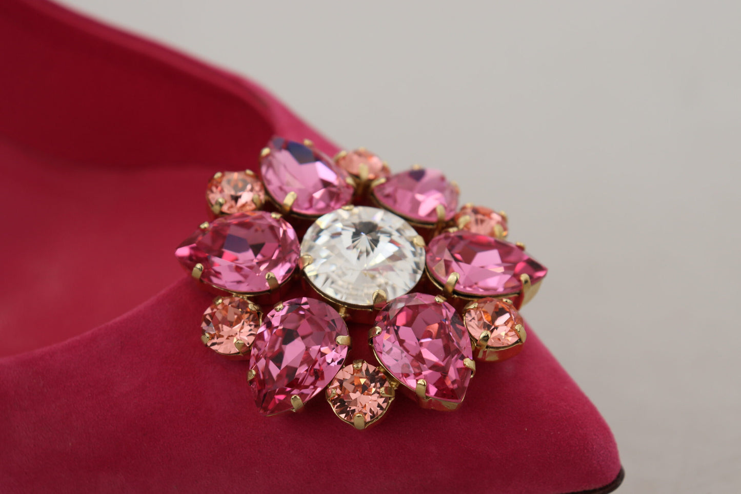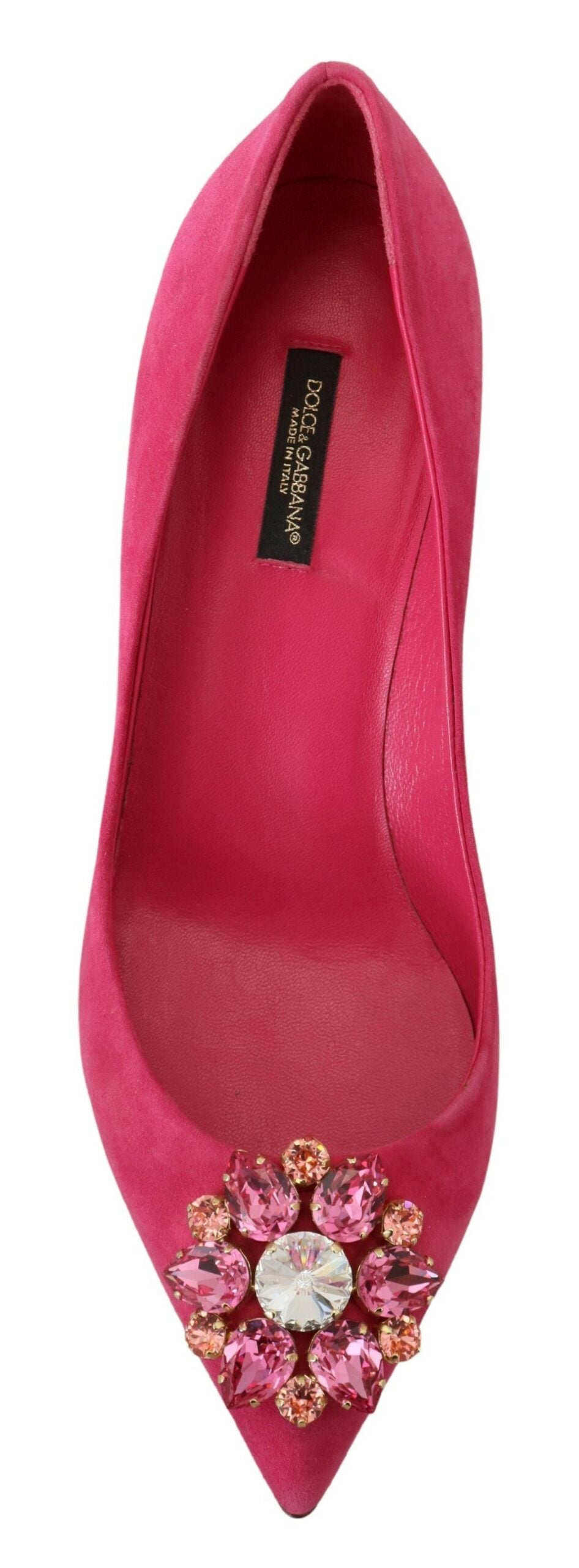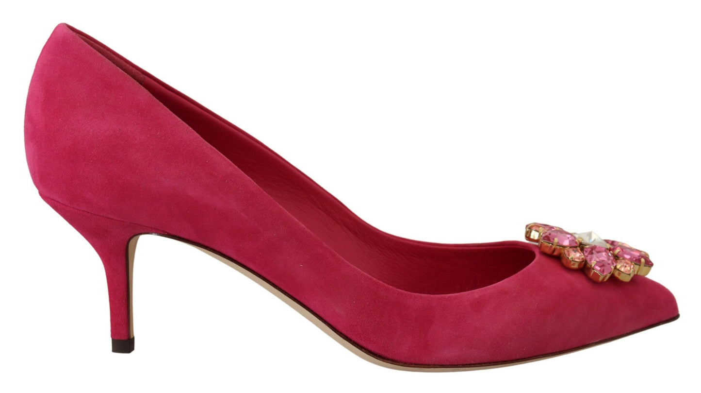 Step into luxury with these exquisite Pink Suede Shoes from Dolce & Gabbana, brand new with tags. Adorned with sparkling crystals and designed with a sleek pointed toe, these pumps are the epitome of elegance. The meticulously crafted leather sole ensures both durability and comfort, making these shoes a must-have for any fashion-forward wardrobe. Manufactured with precision in Italy, each pair showcases the classic Dolce & Gabbana logo details.