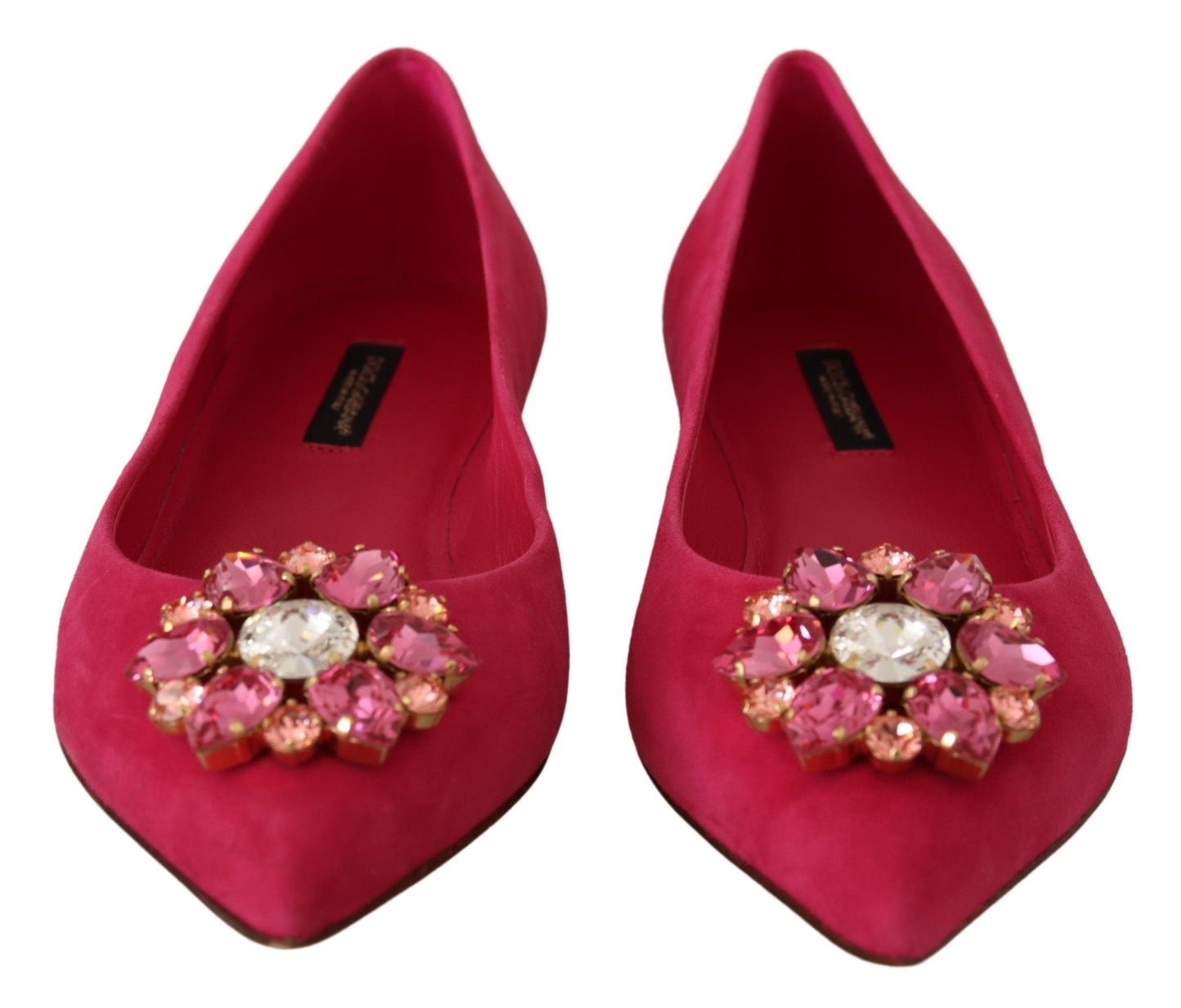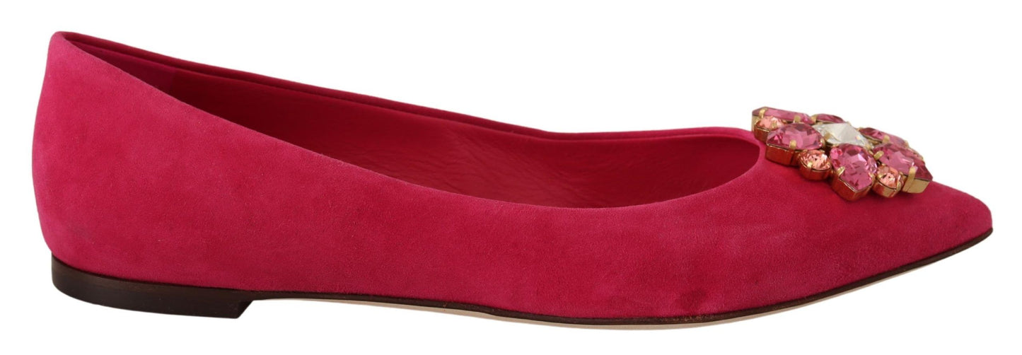 Step into opulence with these stunning Dolce & Gabbana suede flats, adorned with shimmering crystals. Featuring a refined pointed toe, a comfortable slip-on design, and crafted with the utmost quality, these flats are a testament to exquisite Italian craftsmanship. Perfect for adding a touch of luxury to any ensemble.
