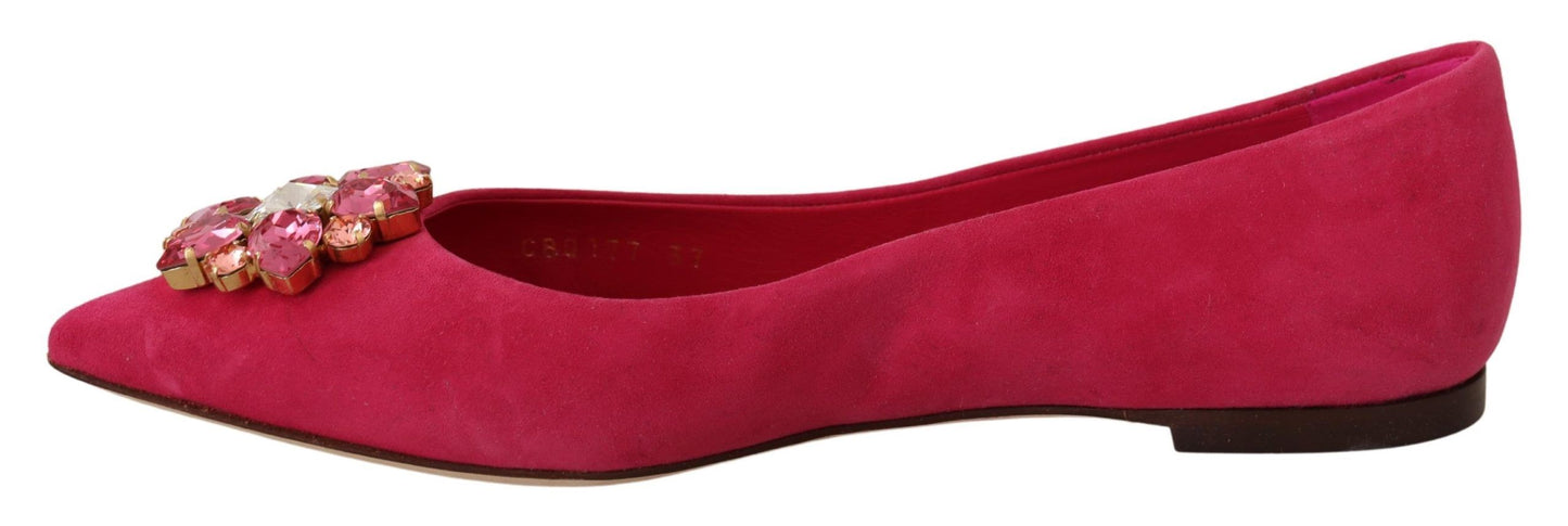Embellished Crystal Suede Flats in Pink