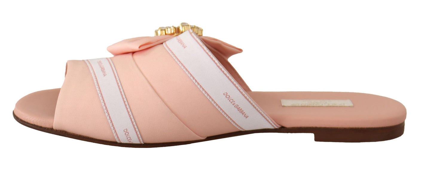 Crystal Embellished Silk Slides in Pink