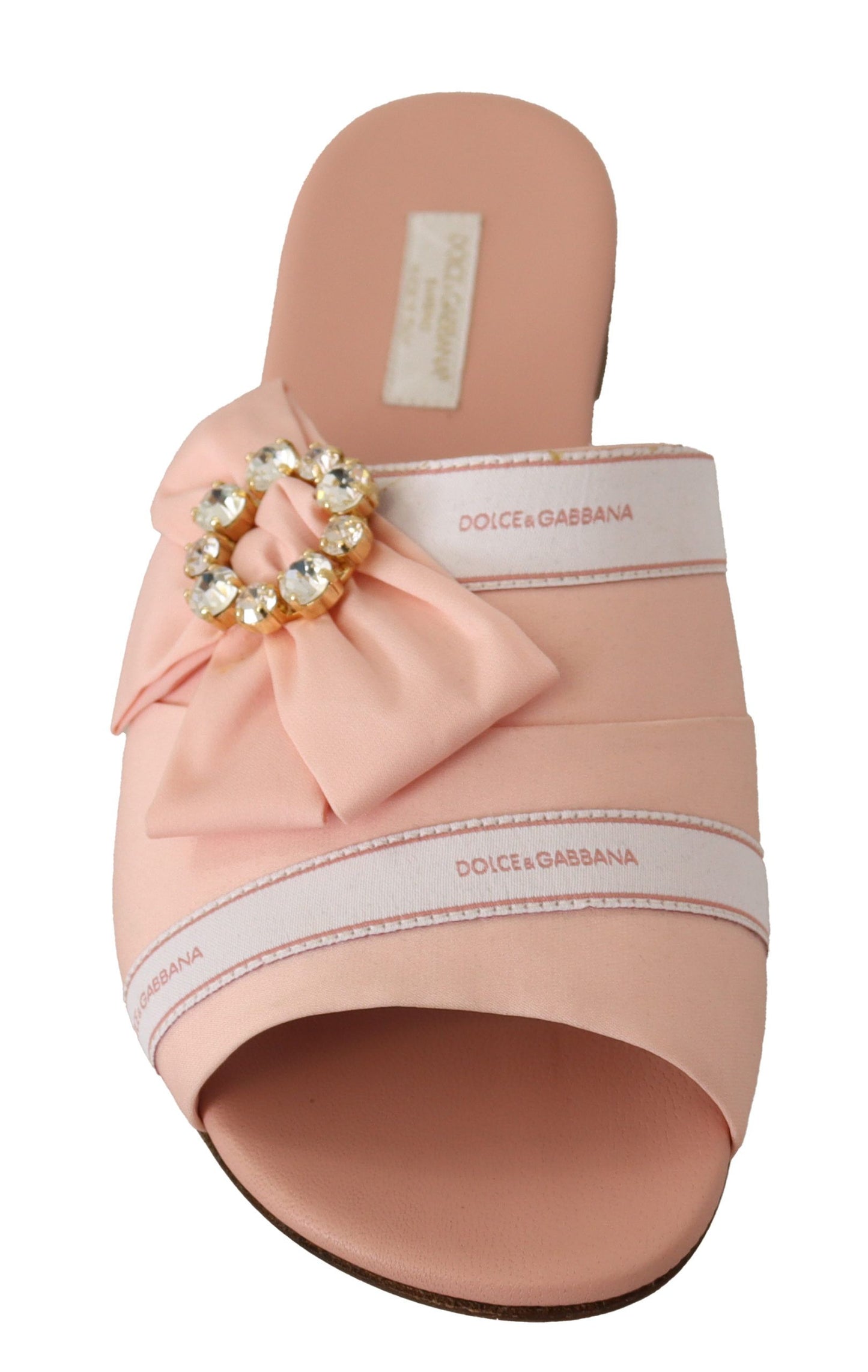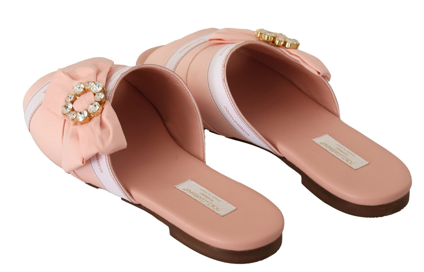 Step into luxury with these opulent Dolce & Gabbana slides, adorned with sparkling crystal embellishments. Crafted from a sumptuous blend of silk and elastane, these flats deliver both comfort and elegance. Their vibrant pink hue, complemented by clear crystals, makes for an eye-catching statement piece. Perfect for infusing a touch of Italian sophistication into your wardrobe, they feature a leather insole and sole for enduring quality. With meticulous attention to detail, these slides encapsulate the iconic designer flair — a must-have for the discerning fashion enthusiast.