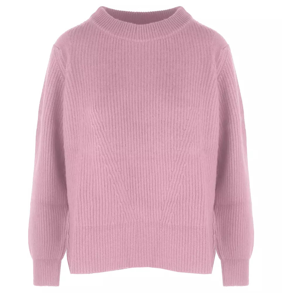 Envelope yourself in the epitome of comfort and elegance with this luxuriously soft crew neck sweater. Crafted from 100% cashmere, the sweater boasts a delicate ribbed design that feels as opulent as it looks. Its beautiful pink hue adds a touch of feminine charm to any ensemble. Perfect for those who appreciate the finer things in life, this sweater offers both warmth and unrivaled style.