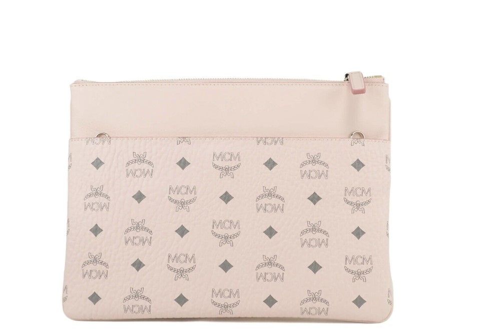 Style: MCM Portuna Medium Visetos Flat Pouch Bag (Powder Pink)