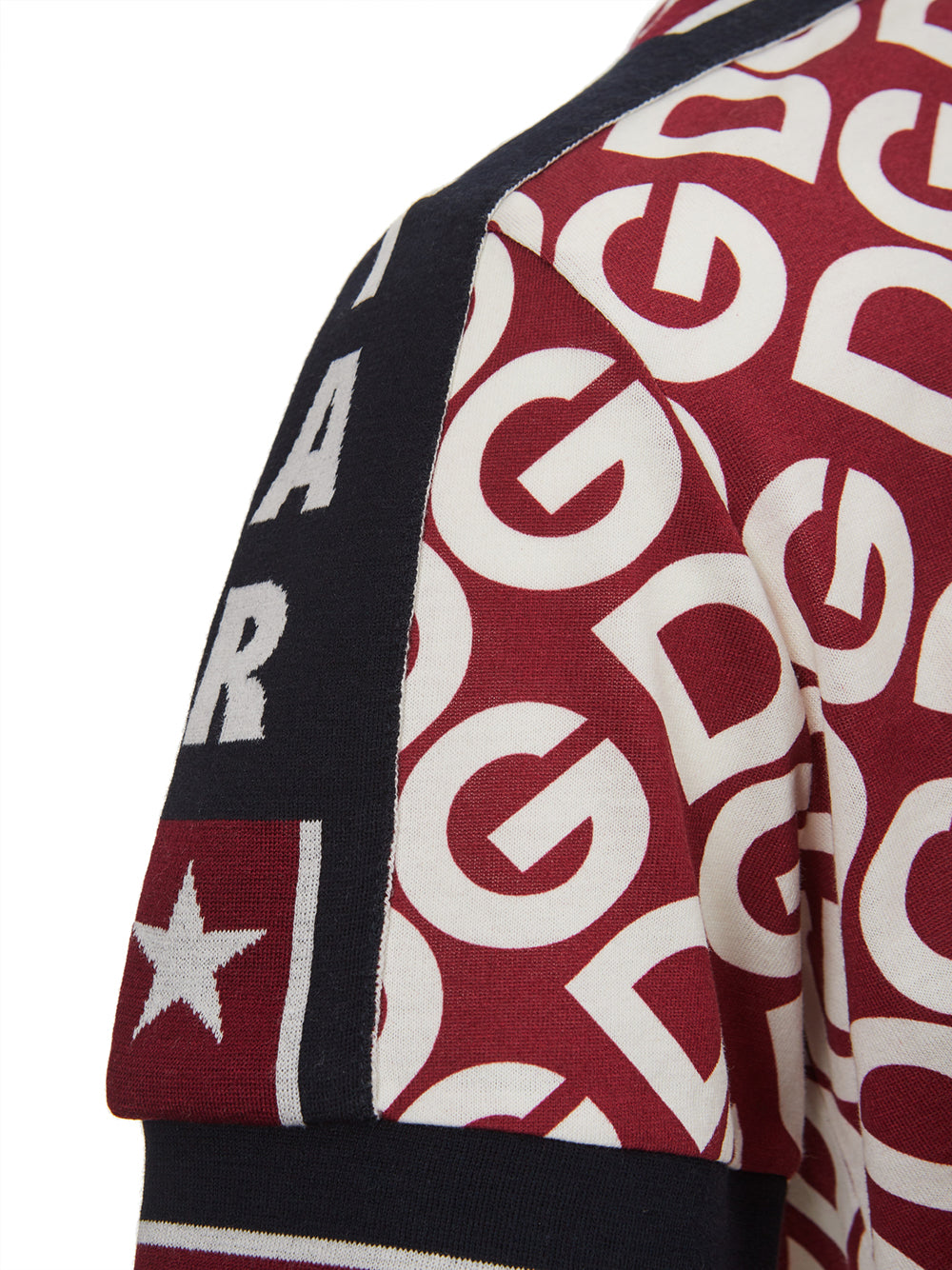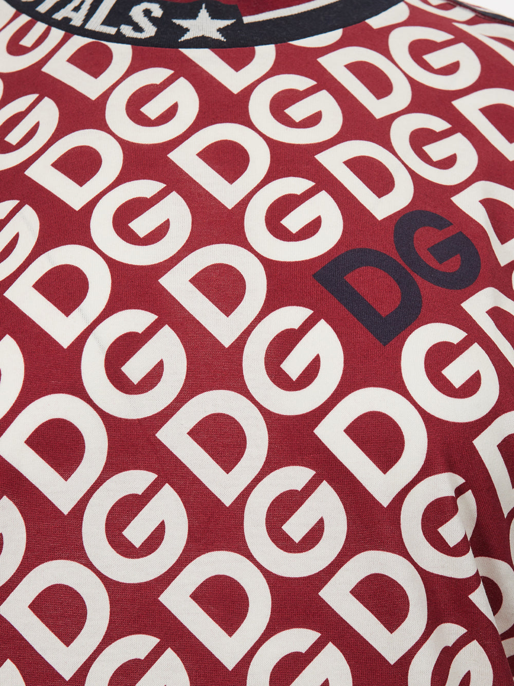 Make a bold statement with this stunning new arrival from Dolce & Gabbana. This red T-shirt exudes style with its all-over DG printed logo, offering a perfect blend of high-end fashion and casual comfort. Tailored to give you a regular fit, this piece is crafted from the softest 100% cotton, making it a must-have for any fashion-forward wardrobe.
