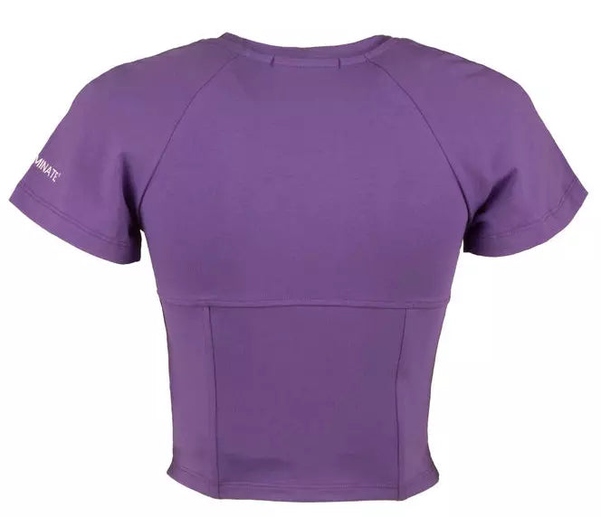 Exude style and confidence with this striking purple bi-elastic crop top, designed for a figure-hugging fit that offers both comfort and bold fashion statements. The combination of cotton and elastane ensures a soft, stretchy feel, while the distinct bustier design and subtle logo detail on the shoulder add a touch of edgy sophistication to your wardrobe.