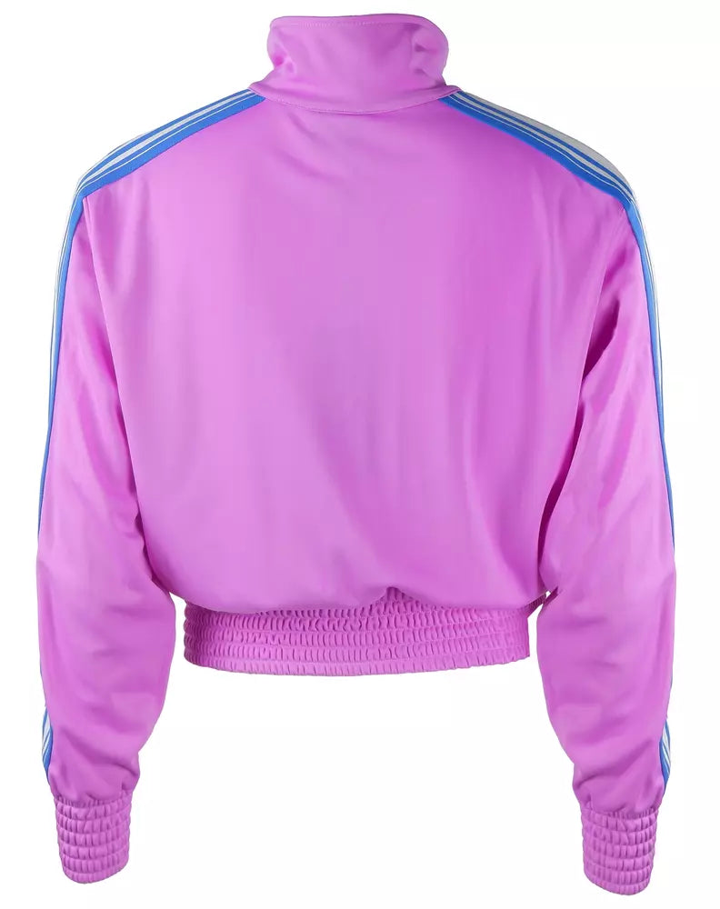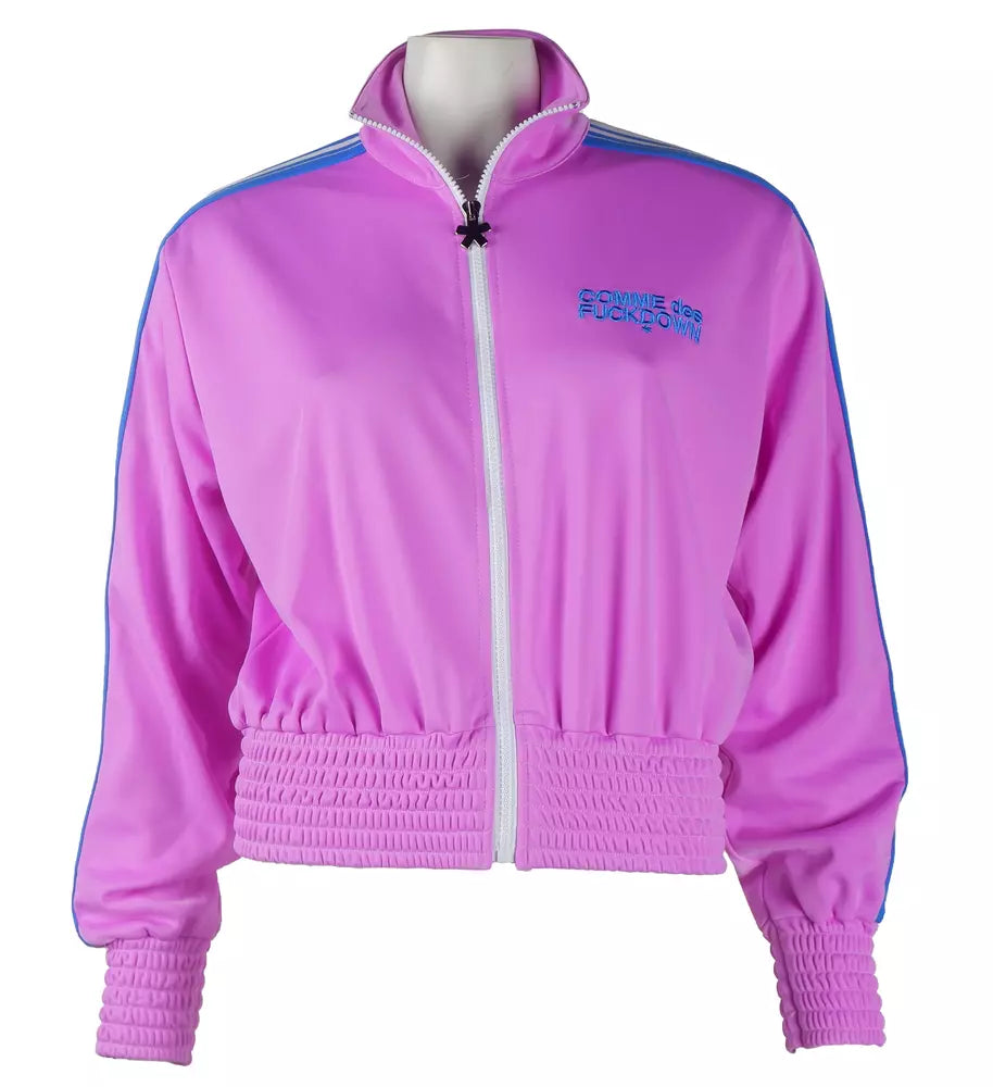 Envelop yourself in the epitome of streetwise elegance with this zippered purple jacket. This piece features stylish side bands on the sleeves and a prominently embroidered logo on the chest, blending Italian craftsmanship with contemporary design.