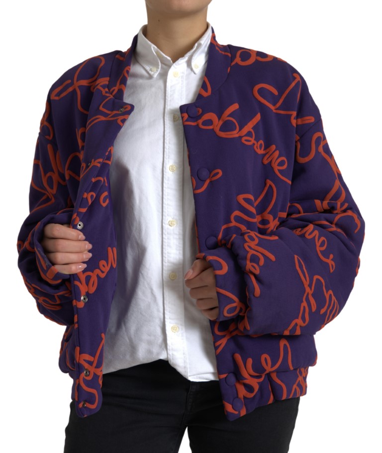 Purple Logo Print Nylon Button Down Jacket