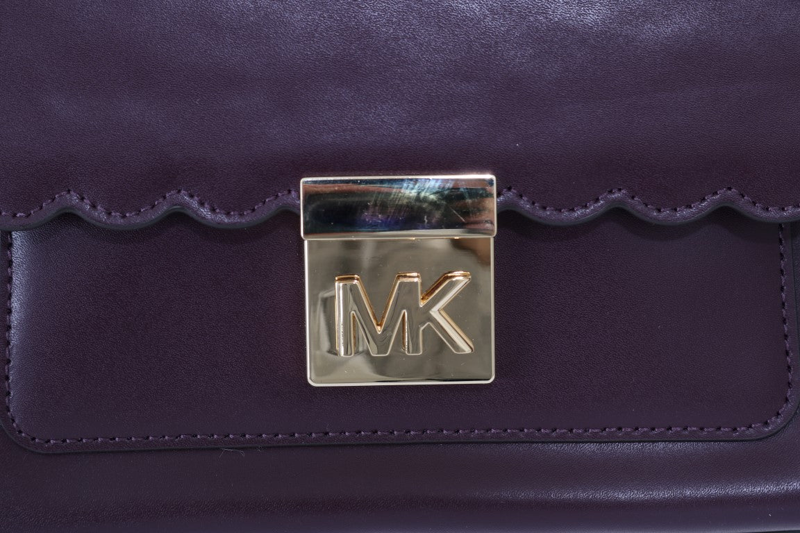 Indulge in timeless elegance with this exquisite Michael Kors Mindy Shoulder Bag, perfect for making a sophisticated statement. Crafted from luxurious leather in a rich damson purple, this accessory is as functional as it is fashionable. The bag features a comfortable, adjustable strap and is complemented by lustrous gold-tone hardware, including a secure magnetic flap closure. Inside, a neatly organized interior awaits, including a zippered pocket for your precious essentials. Complete with original tags and a Michael Kors shopping bag, it’s an embodiment of chic functionality.