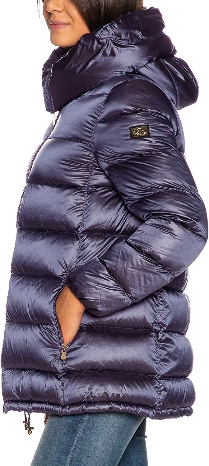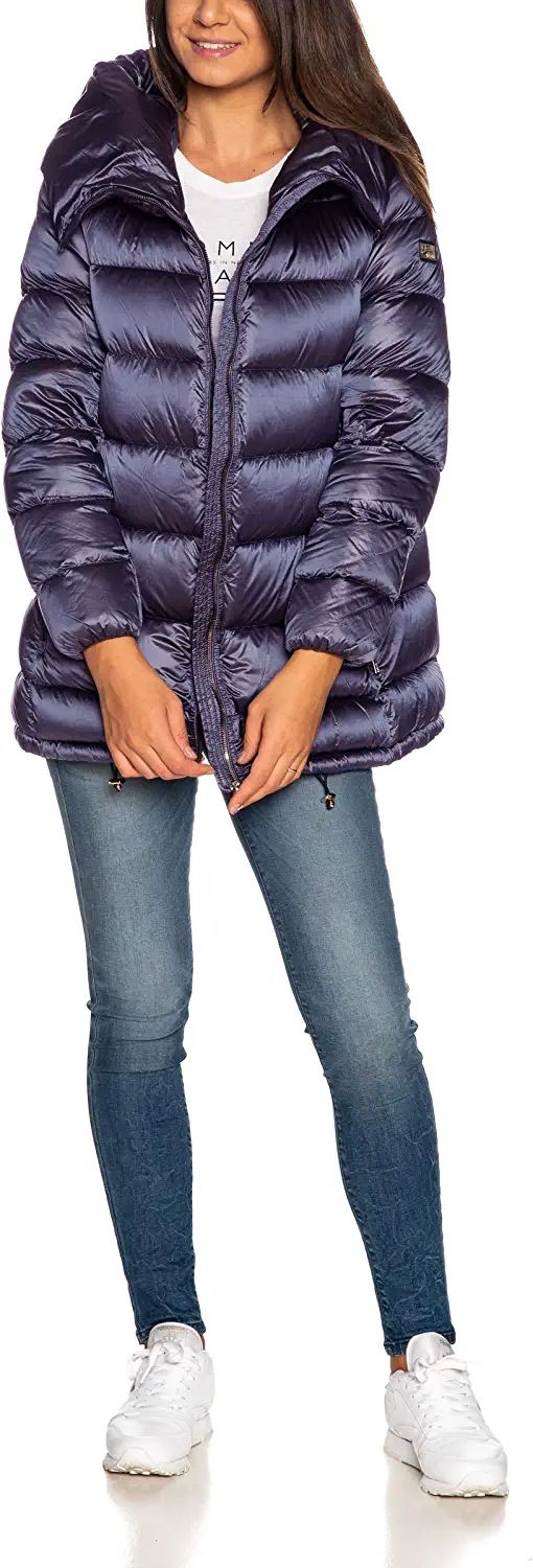 Embrace the luxury of warmth and style with this elegant purple down jacket, designed for women who appreciate quality and comfort. Crafted from 100% polyamide, this jacket features sumptuous real down padding that ensures you stay cozy without compromising on style. The high collar with a hood provides extra protection against the chill, while the zip closure and two side pockets add practicality to its sleek design.