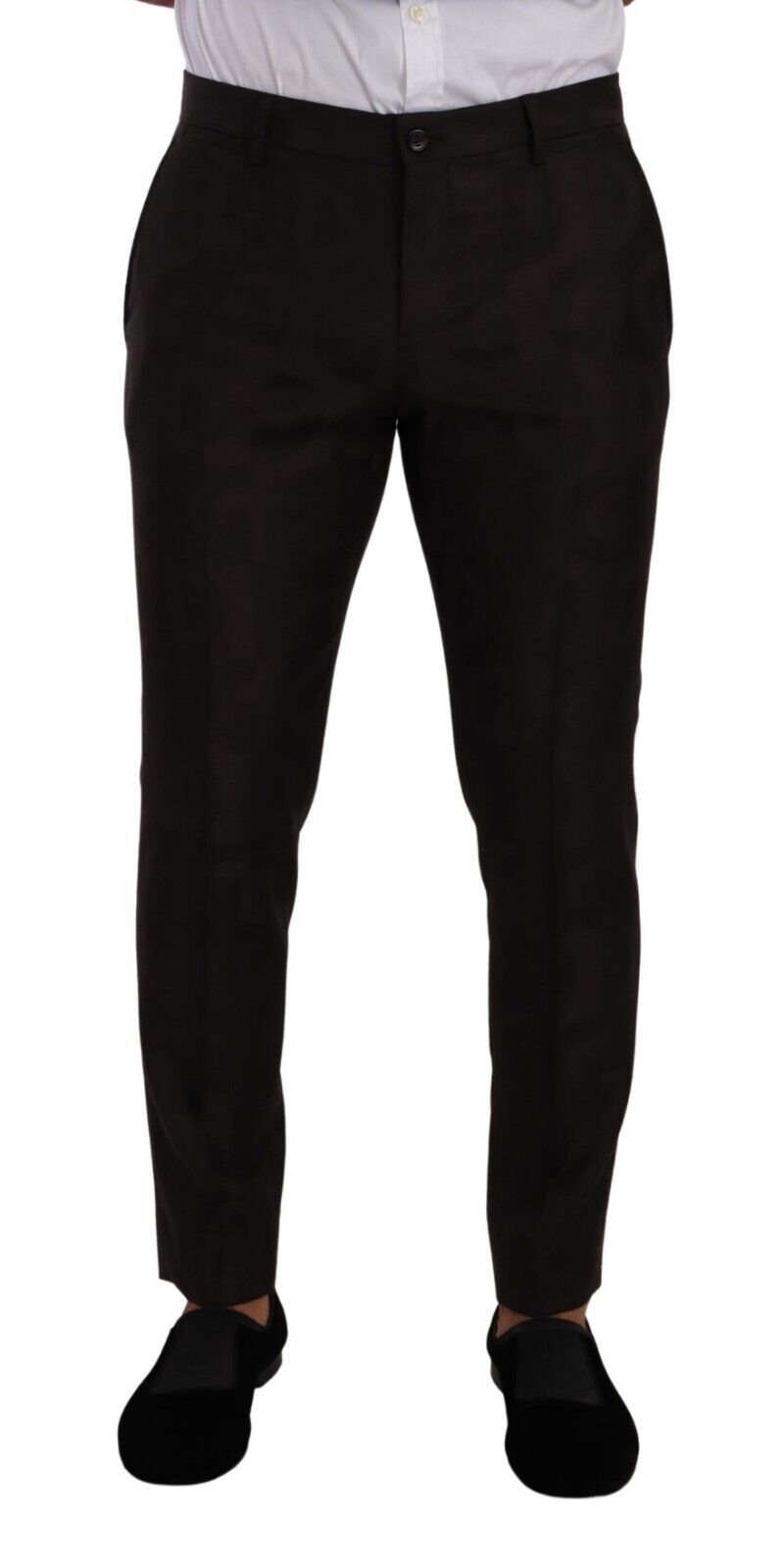Discover the epitome of Italian tailoring with this luxurious, 100% Authentic Dolce & Gabbana men’s 3-piece suit. Impeccably crafted, this purple double-breasted suit features a sharp silhouette and the iconic DG logo pattern, presenting a perfect blend of modern style and traditional craftsmanship. The slim-fit blazer boasts peak lapels and a single button closure, complemented by a matching waistcoat with a full button closure and an adjustable back strap. The trousers round off the ensemble with a sophisticated touch, offering a zip and button closure, practical pockets, and pressed pleats. Unfinished hems allow for custom tailoring, ensuring a perfect fit. Embodying exclusive and high craftsmanship, this suit is a statement piece made in Italy, ideal for distinguished occasions requiring a touch of class.