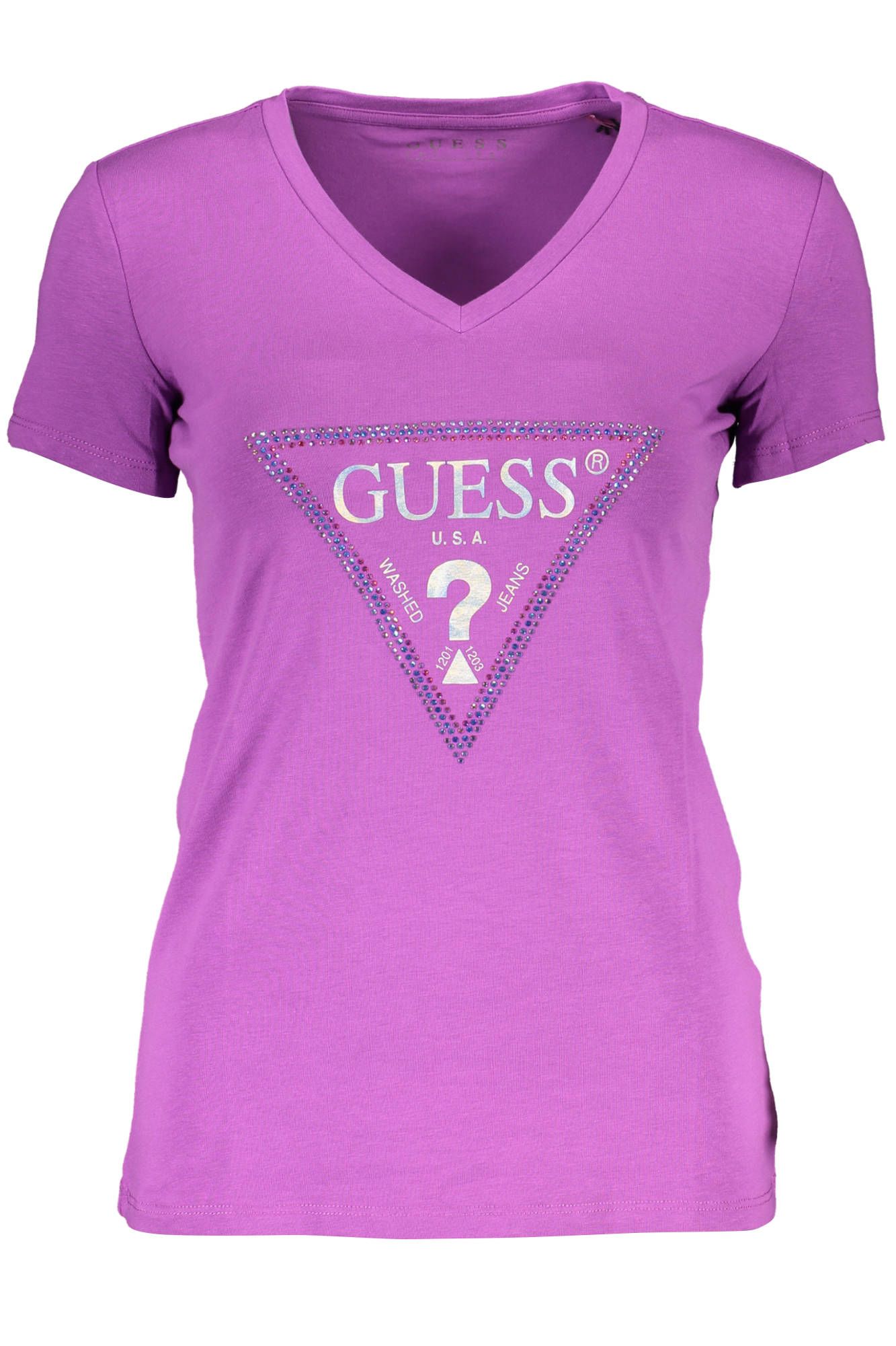 Embrace your casual elegance with this charming short-sleeved t-shirt from Guess Jeans. Featuring a feminine ‘V’ neckline and adorned with alluring prints and intricate applications, this top is completed with the iconic logo, giving it a signature touch of class. A fantastic fusion of comfort and style, perfect for elevating your off-duty looks.