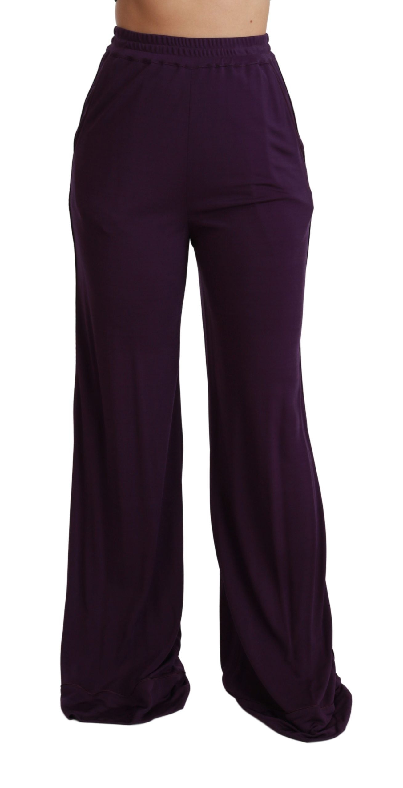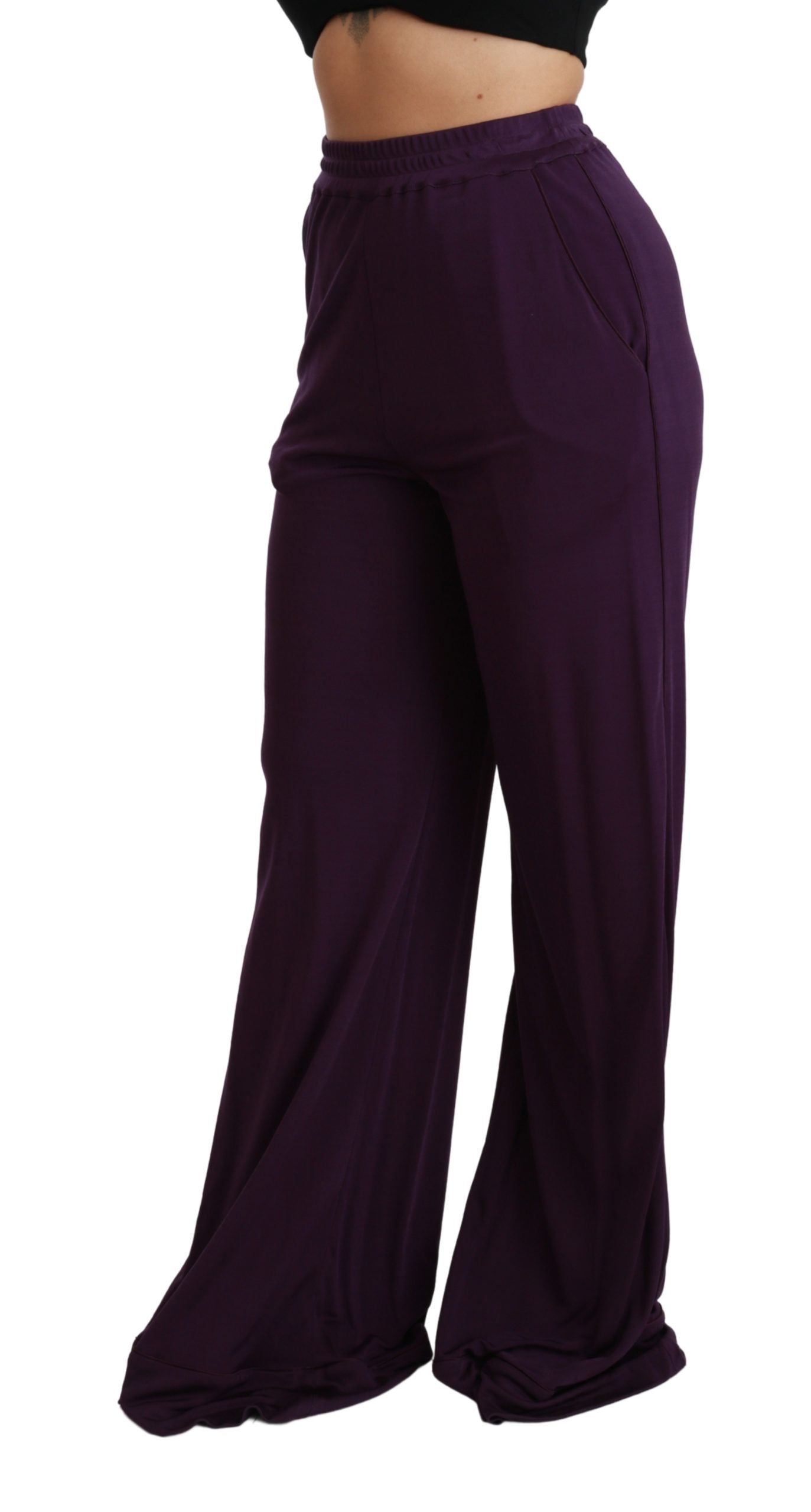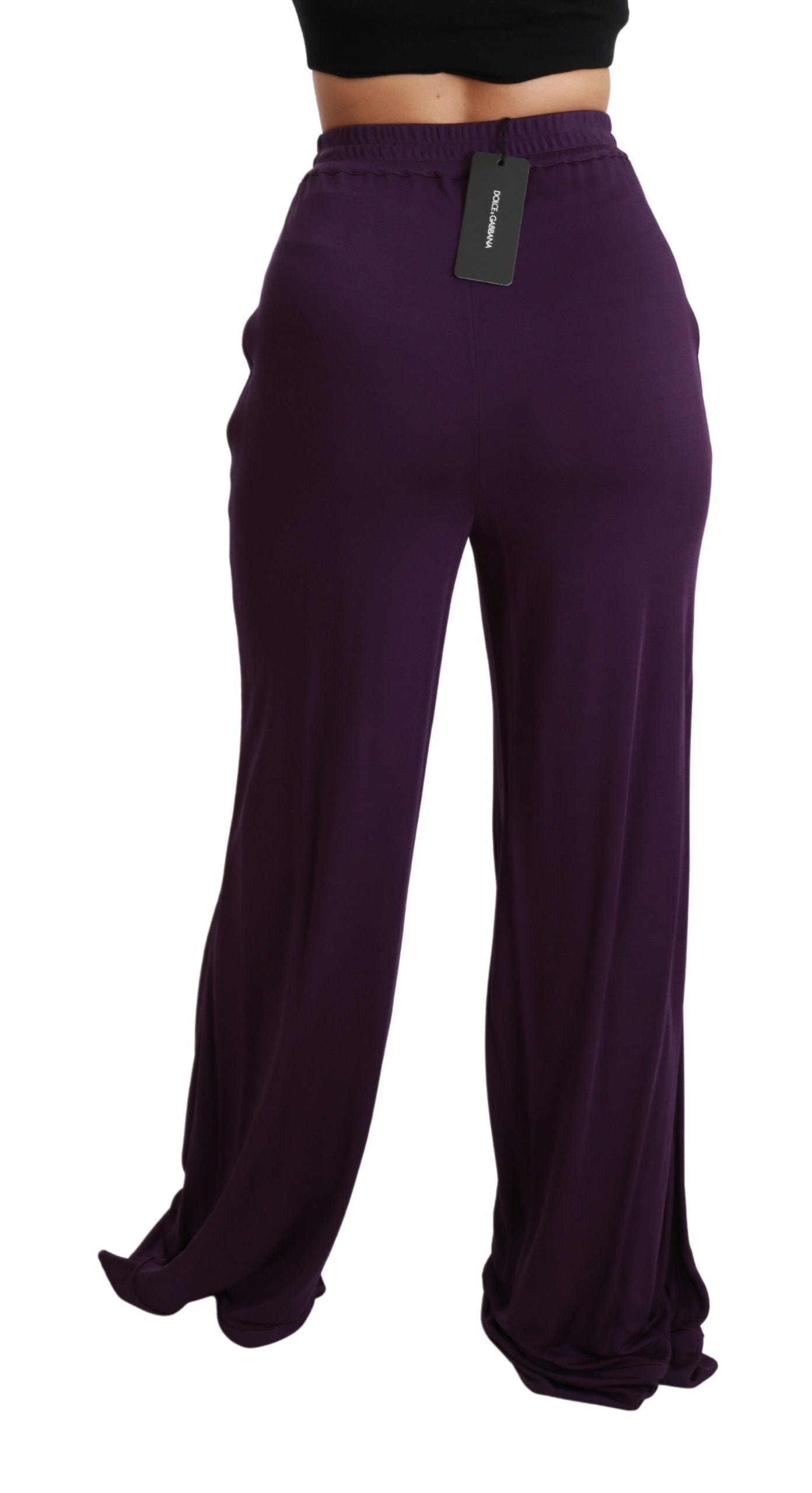 Discover the epitome of elegance with these luxurious High Waist Wide Leg trousers from Dolce & Gabbana. Crafted from sumptuous 100% viscose, these pants present a sleek violet purple hue that exudes sophistication. Complete with an elastic waist for assured comfort, these pants are a perfect mix of style and practicality. Embellished with the brand’s iconic logo details and meticulously made in Italy, they promise to be a timeless addition to your wardrobe.
