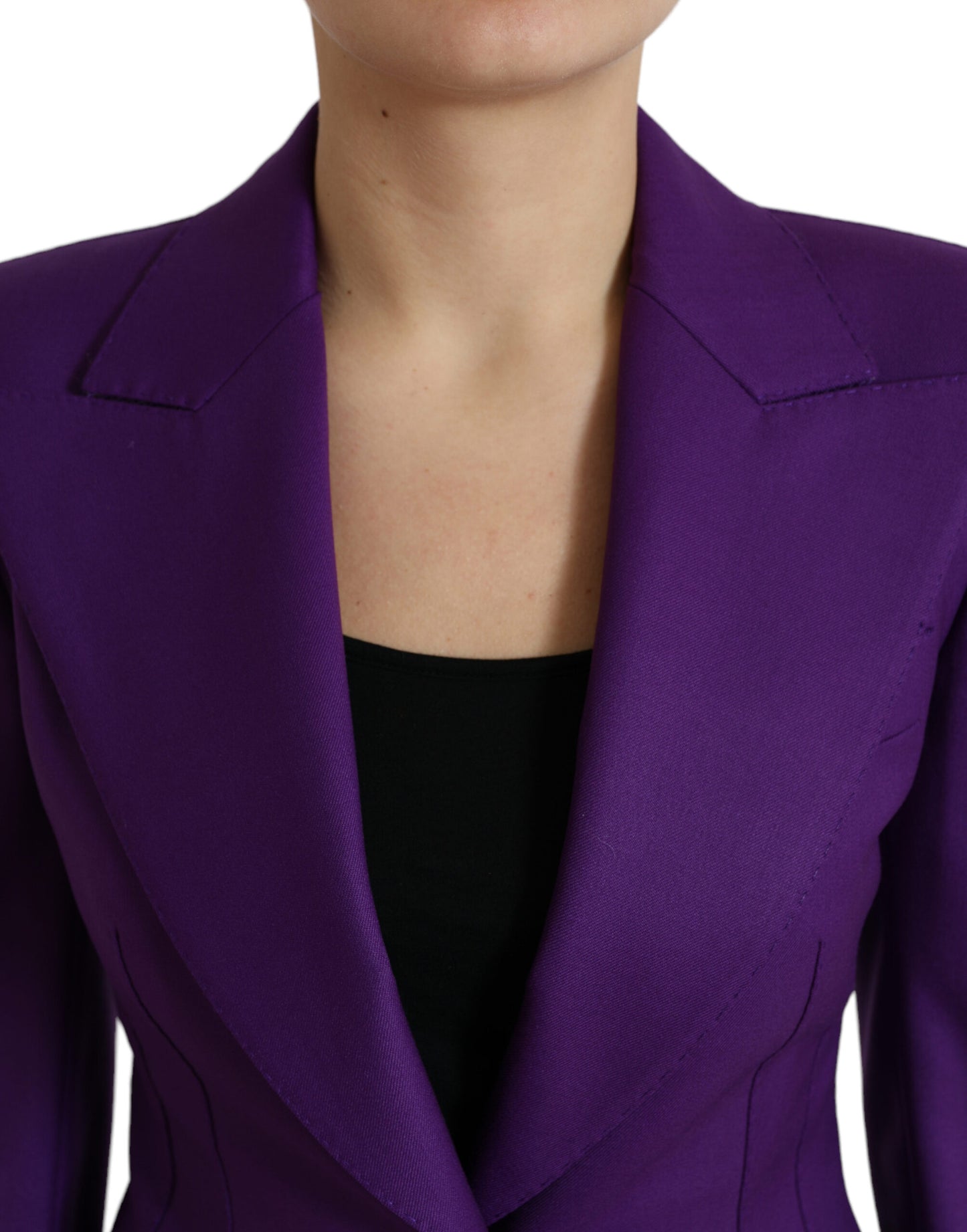 Purple Wool SingleBreasted Fitted Coat Jacket