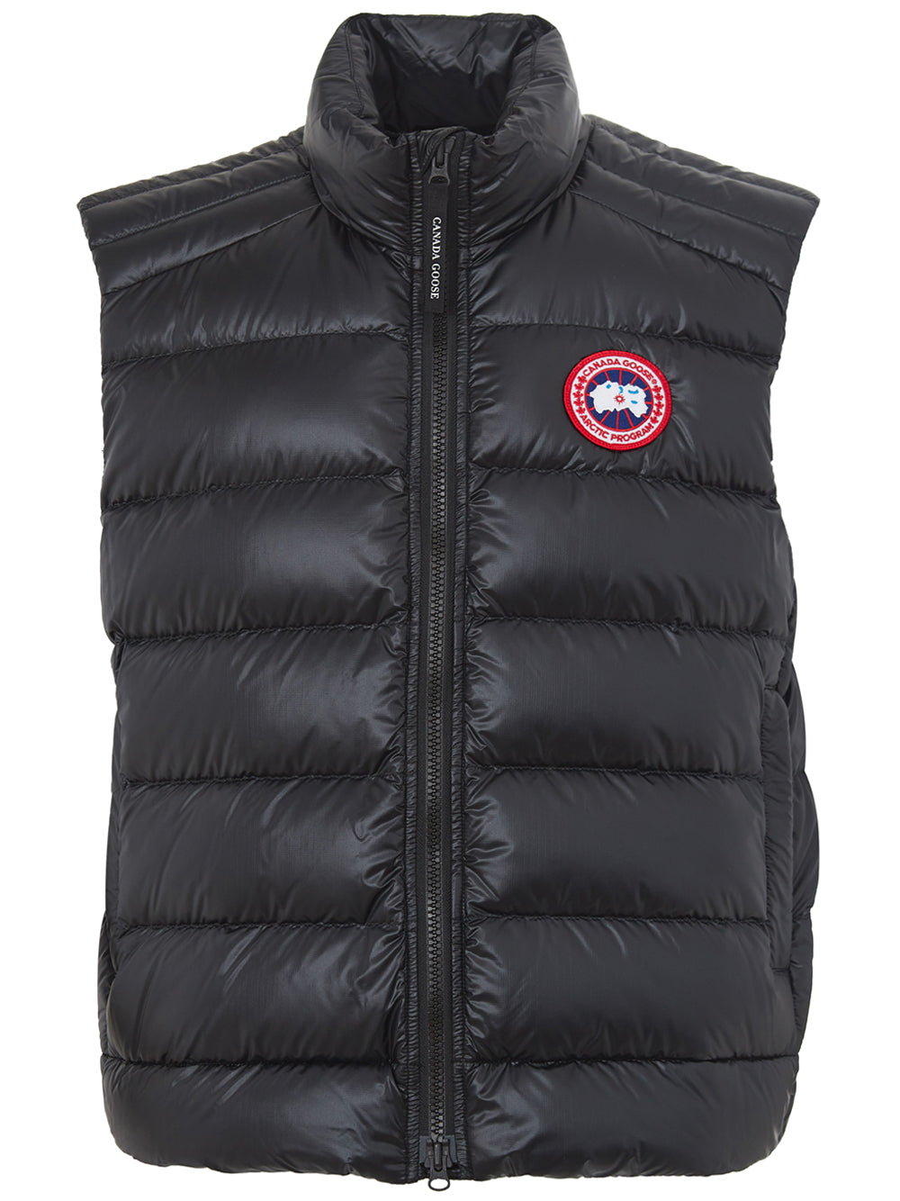 Step into the season with the epitome of style and warmth with our stunning new arrival, the Canada Goose Crofton Vest Jacket. Perfect for transitioning weathers, this quilted black vest jacket features a sleek front zip closure, practical side zipped pockets, and an understated patch logo that is instantly recognizable. An inner pocket offers additional convenience, making this vest as functional as it is fashionable.