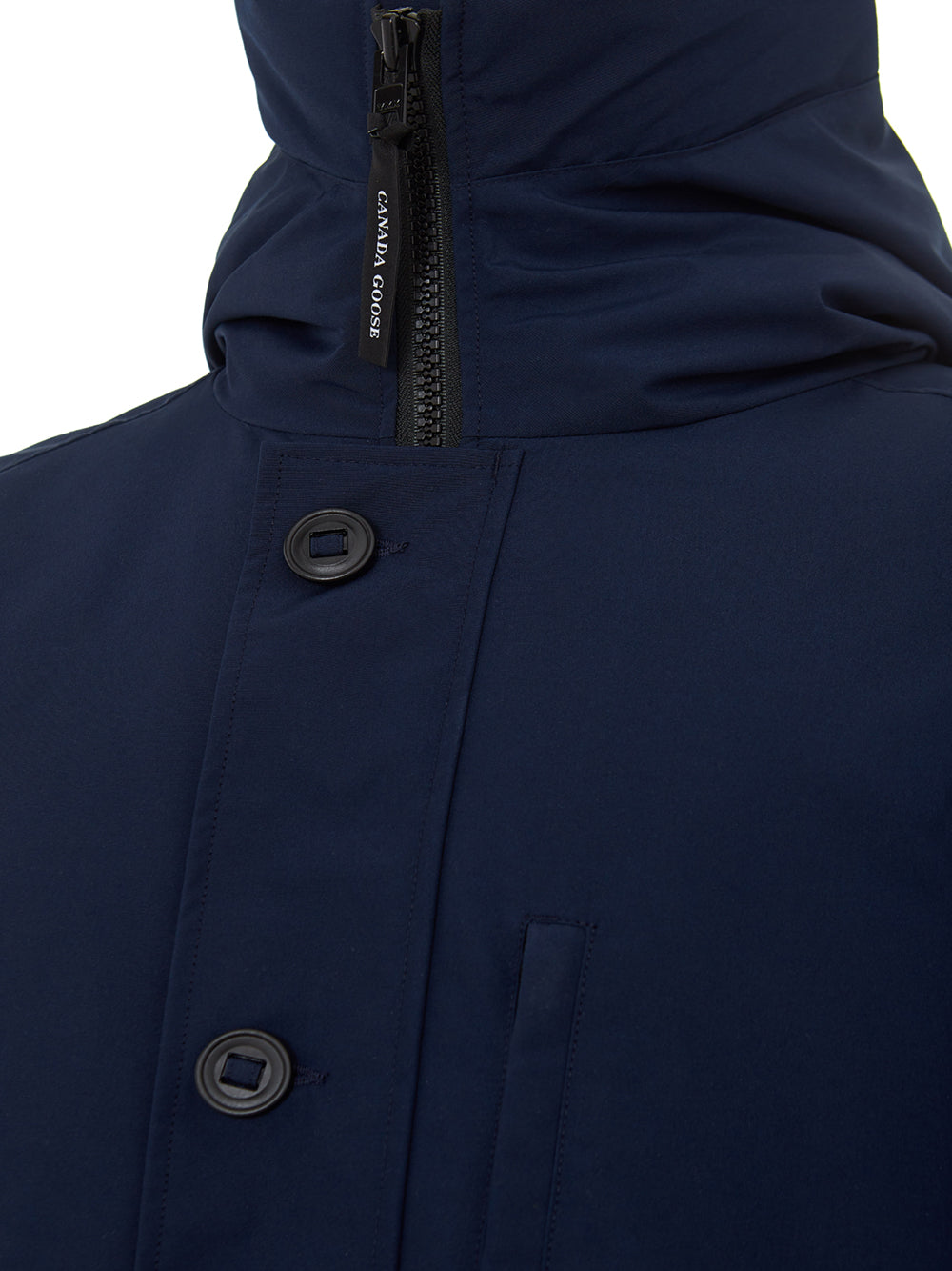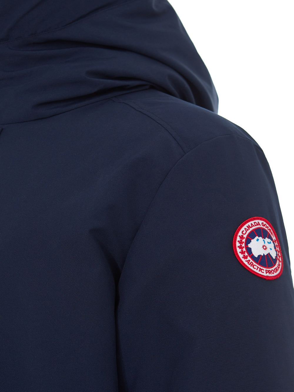 Step into the chill with confidence in our Elegant Blue Chateau Hooded Parka. This luxurious and practical parka from Canada Goose is the epitome of style meets functionality. Crafted with precision in Canada, the jacket’s robust blend of polyamide and cotton ensures durability while providing warmth and comfort. With its sleek blue hue and a design that features a front zip with button closure, multiple pockets, and an adjustable inner waist coulisse, this parka is the perfect companion for the colder months. The iconic Canada Goose patch on the sleeve adds a stamp of high-quality allegiance.