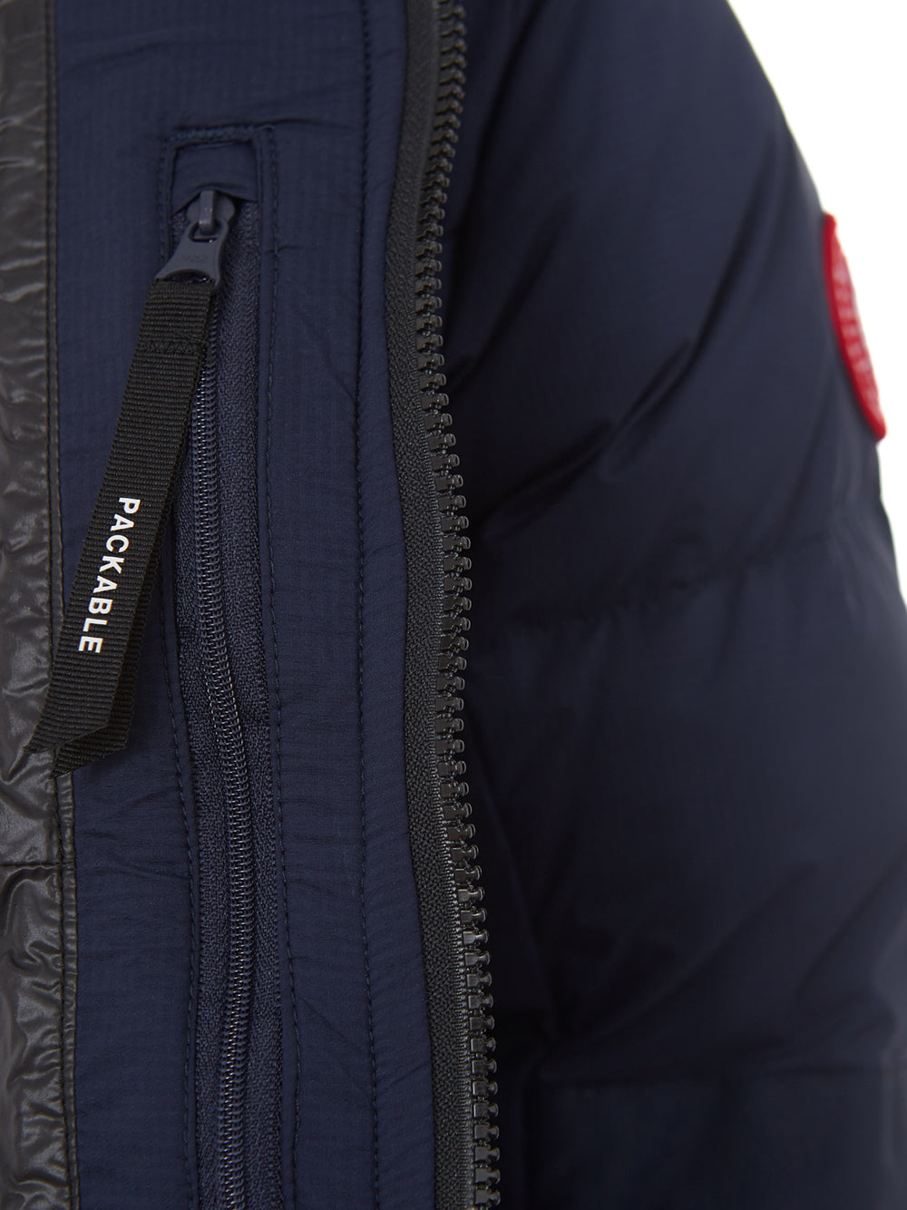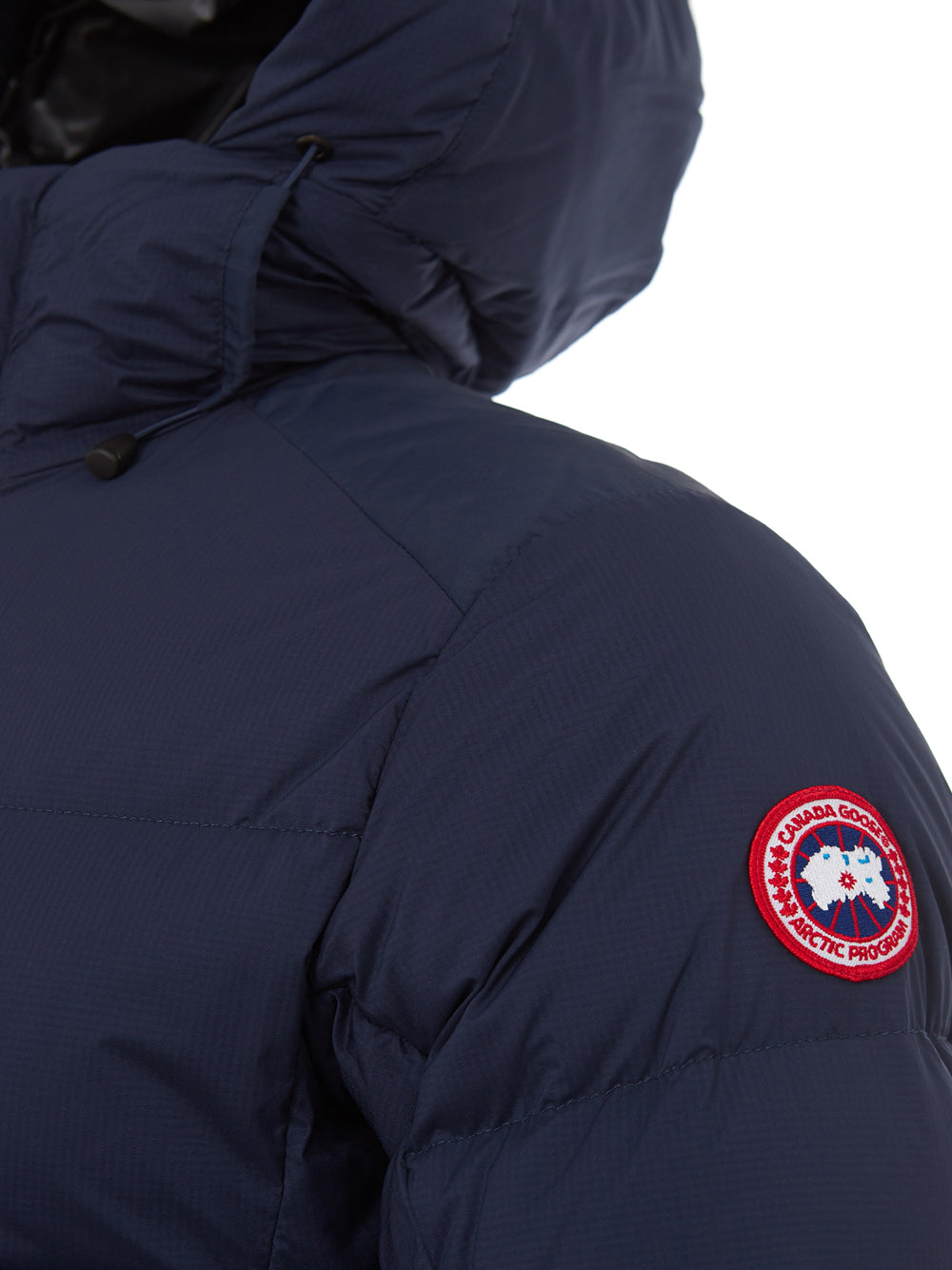 Step into the chilly seasons with style in this Quilted Blue Hooded ‘Armstrong’ Jacket, a masterpiece of both fashion and function from the premium brand Canada Goose. This jacket is not only a stunning addition to your wardrobe with its vibrant blue hue and contemporary design, but it also promises unwavering warmth and comfort. Featuring a front zip with button closure, two functional buttoned side pockets, an adjustable hood for a personalized fit, and an elongated back for extra protection. Its lightweight construction allows for ease of movement without compromising on insulation.