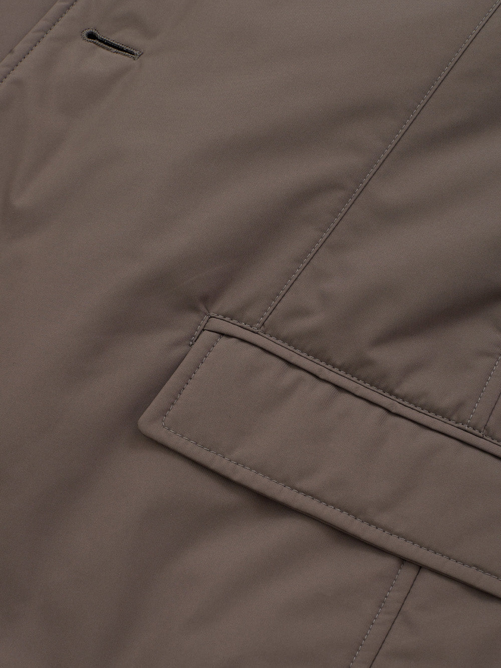 Unlock elegance with this exquisite Dove Grey quilted jacket from Herno. Impeccably crafted with attention to detail, it features a sleek front button closure, two tastefully designed front pockets, and a lightweight inner quilt to keep you comfortable without the added bulk. Enhance your style quotient with its unique inner quilted removable gilet that boasts a micro check print, providing versatility and sophistication in one piece. The added inner zipped pocket ensures functionality alongside fashion. Perfect for those seeking Italian craftsmanship and a regular fit silhouette.