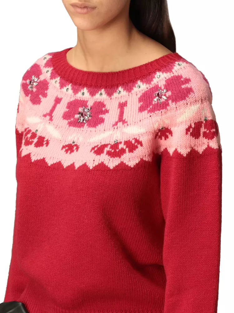 Exude elegance and chic allure with this sumptuous crewneck sweater, crafted in a luxurious wool blend. Adorned with an abstract motif and sparkling rhinestones applied on the back, it stands as a statement piece that adds a touch of glamour to any ensemble. Expertly made in Italy, it promises both warmth and high fashion sensibility.
