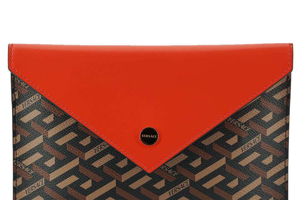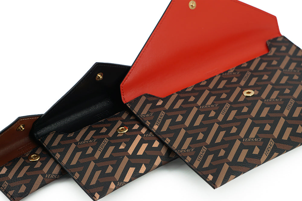 Elegant Versace Trio Pouch Set in Red & Brown