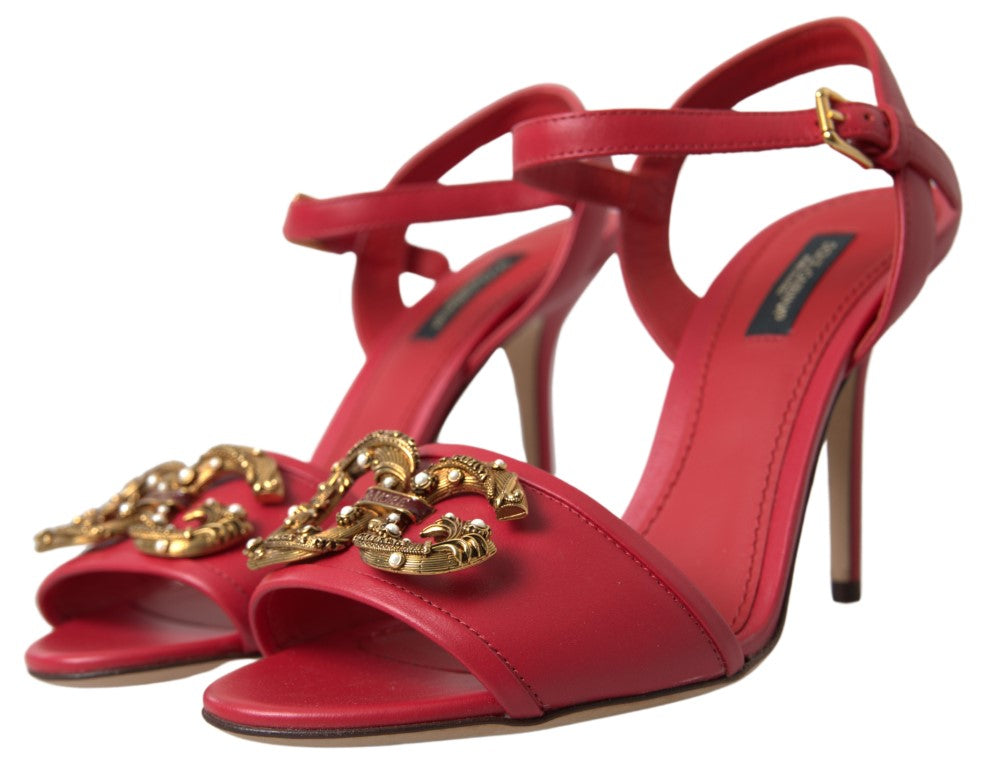 Step out in sophistication with these exquisite Red Stiletto Sandal Heels from the renowned fashion house Dolce & Gabbana. Beautifully crafted with quality and style in mind, these heels feature a vibrant red hue that is sure to turn heads and elevate any ensemble. The luxurious Vitello leather provides a comfortable yet durable wear, making them perfect for any occasion. Complete with iconic logo details and made with Italian finesse, these pumps are a dazzling addition to your shoe collection.