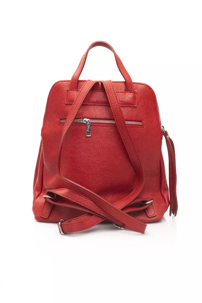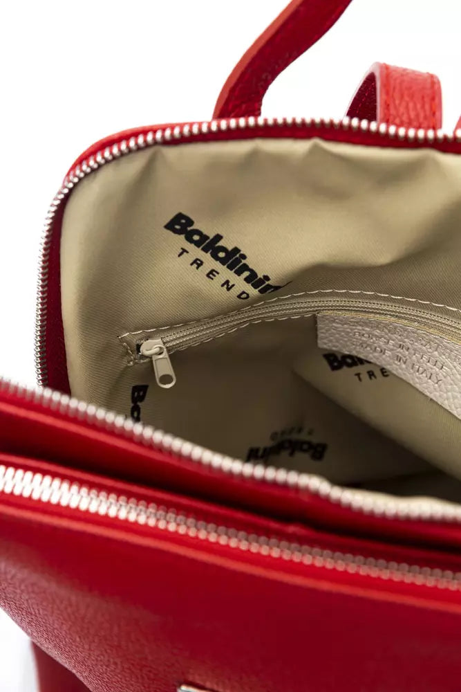 Step out in style with this exquisite red backpack by Baldinini Trend, crafted from luxurious 100% cow leather for a premium feel. Its compact design, measuring 30x30x15cm, encompasses functional elegance with a secure zipper closure, multiple internal pockets for organization, and adjustable shoulder straps for comfortable wear. The external pocket provides easy access, while the front logo adds a touch of upscale branding.