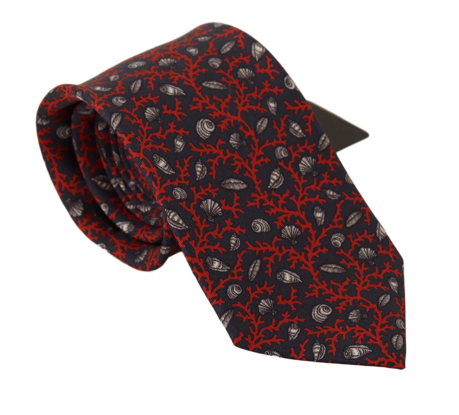 Elegant Seashell Print Silk Tie in Red and Blue