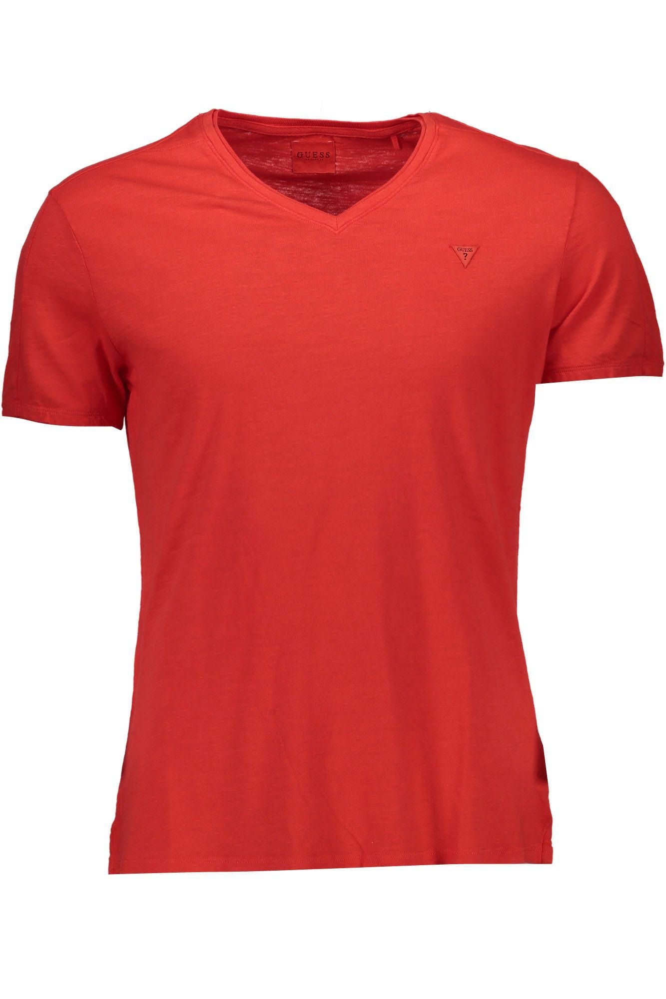 Make a bold statement with this eye-catching red V-neck tee, featuring the iconic logo that adds a touch of class to your casual attire. Perfect for a laid-back day out or a relaxed evening with friends. Designed by the renowned Guess Jeans, this t-shirt promises quality and style.