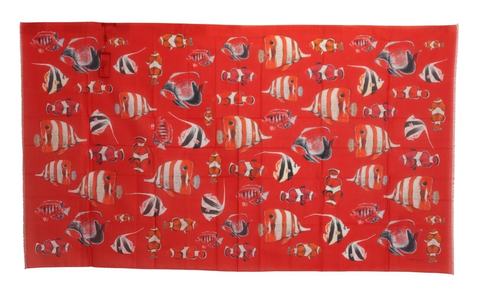 Indulge in the exquisite Italian craftsmanship with this Dolce & Gabbana women’s scarf. The vibrant red fish print design is sure to make a statement piece to any ensemble, while its luxurious 100% cotton composition ensures both comfort and style. Perfect for accenting your look on a breezy day or elevating evening attire.